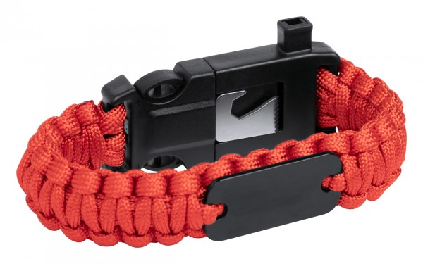 Brățară multifuncțională de supraviețuire din paracord de nailon, cu busolă, fluier și cremene.