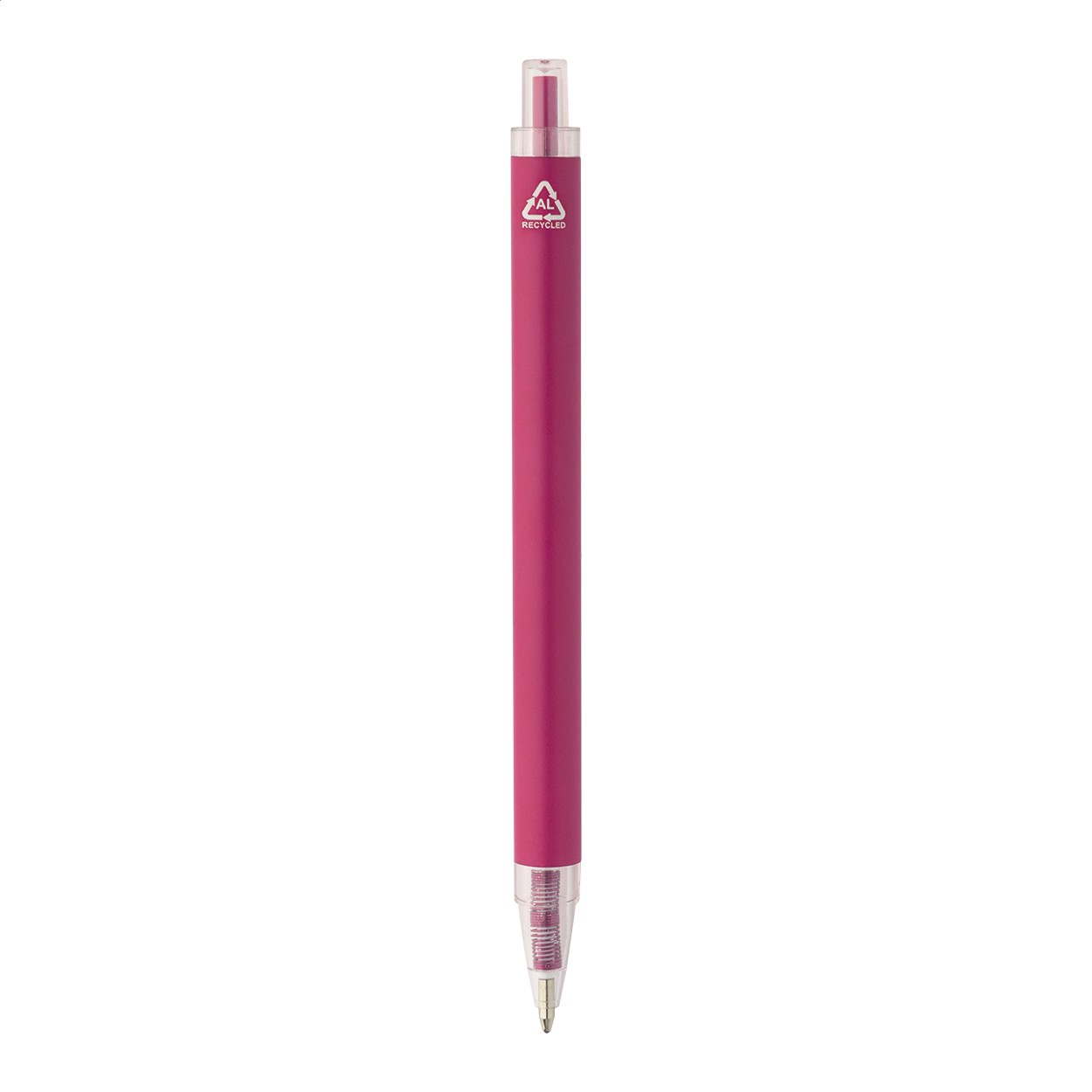 Pix din aluminiu reciclat, cu corp mat și piese transparente din RPET. Cu mină albastră.