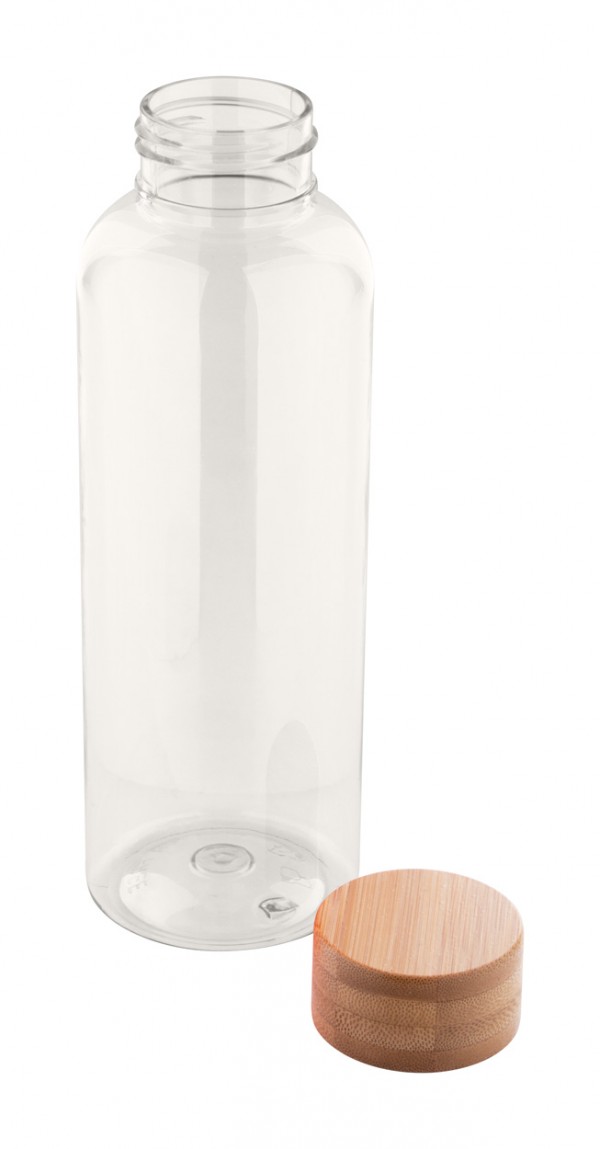 Sticlă RPET, cu capac din bambus, 500 ml. Fără BPA. Nu este potrivită pentru băuturi carbogazoase.