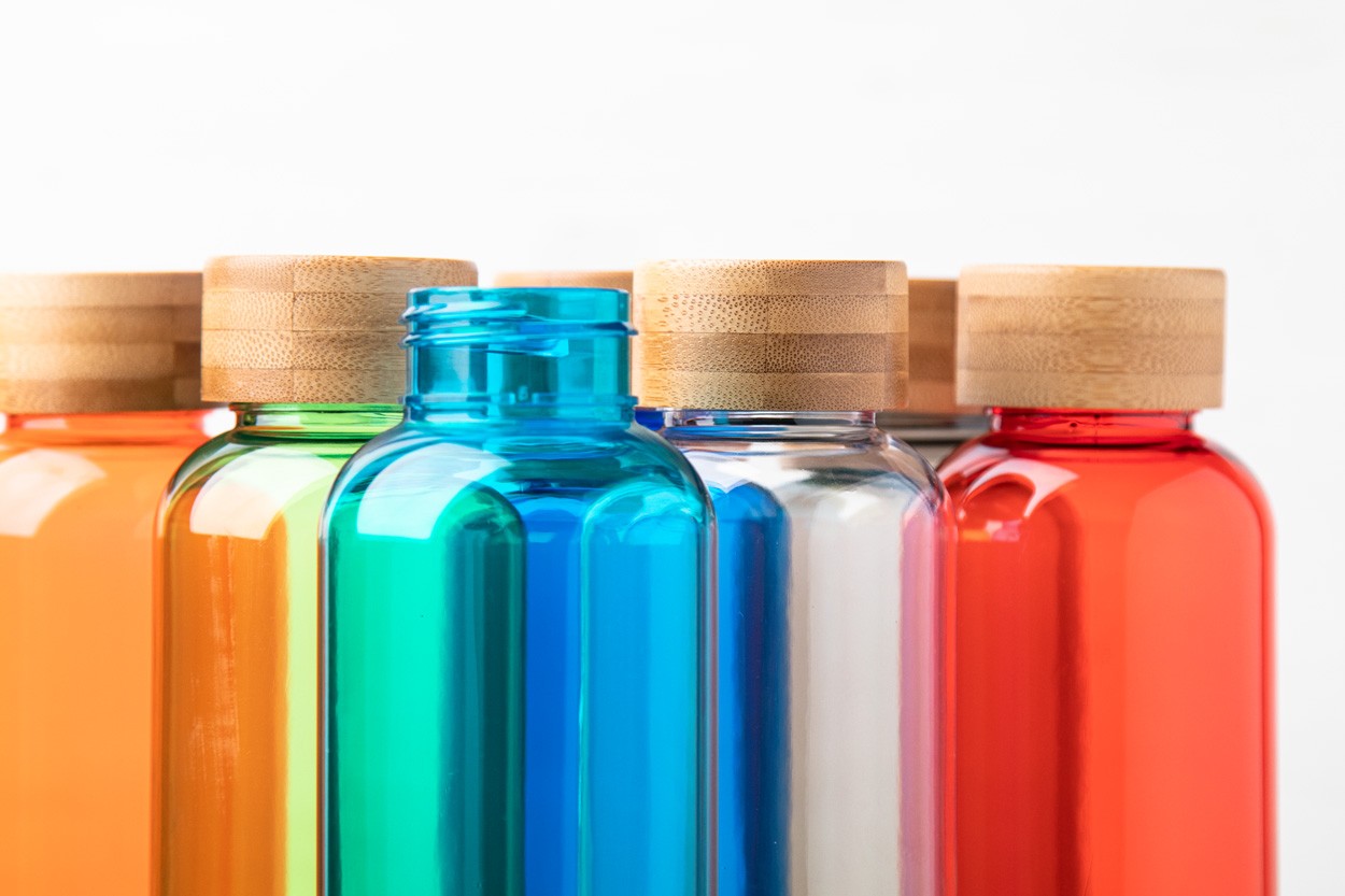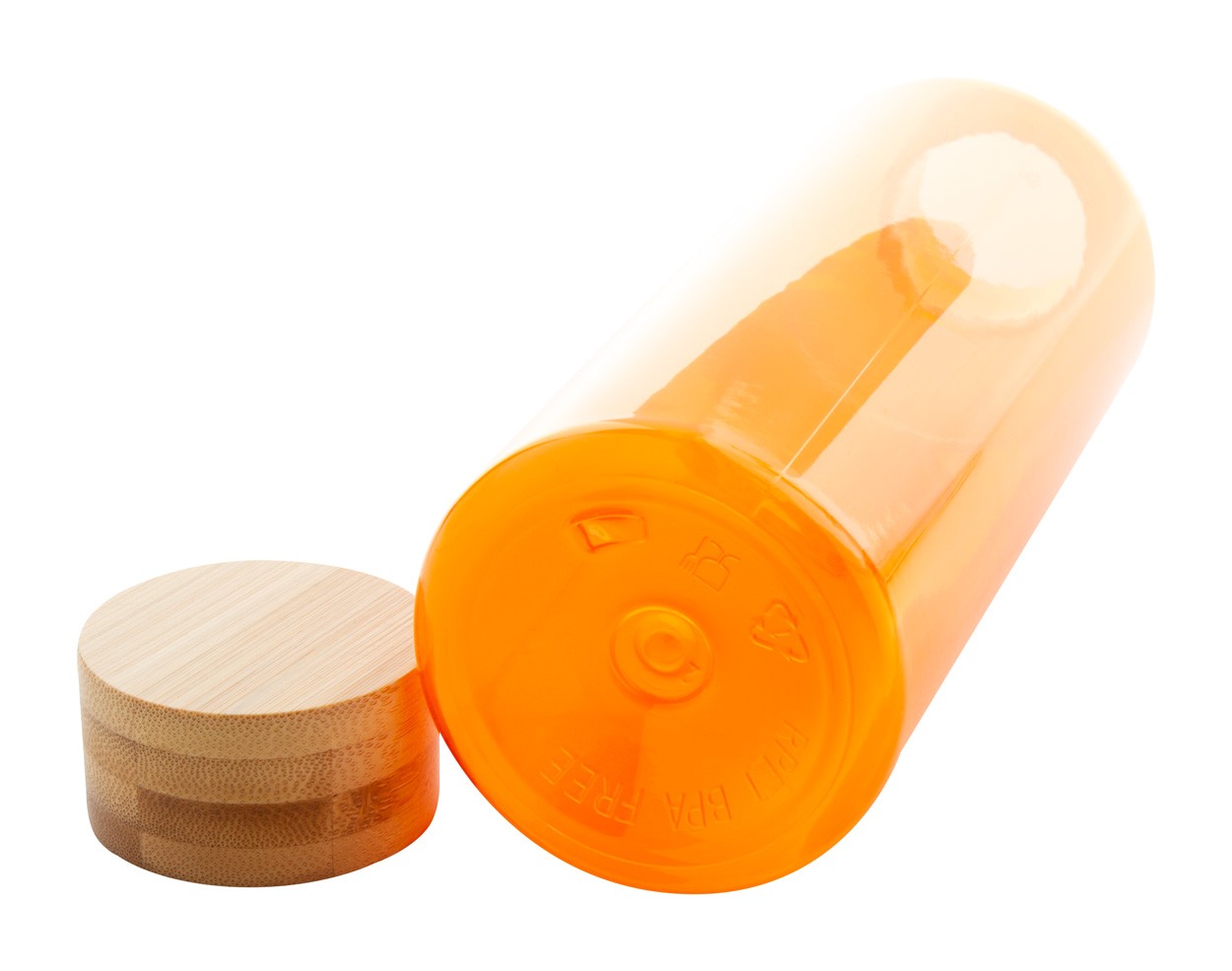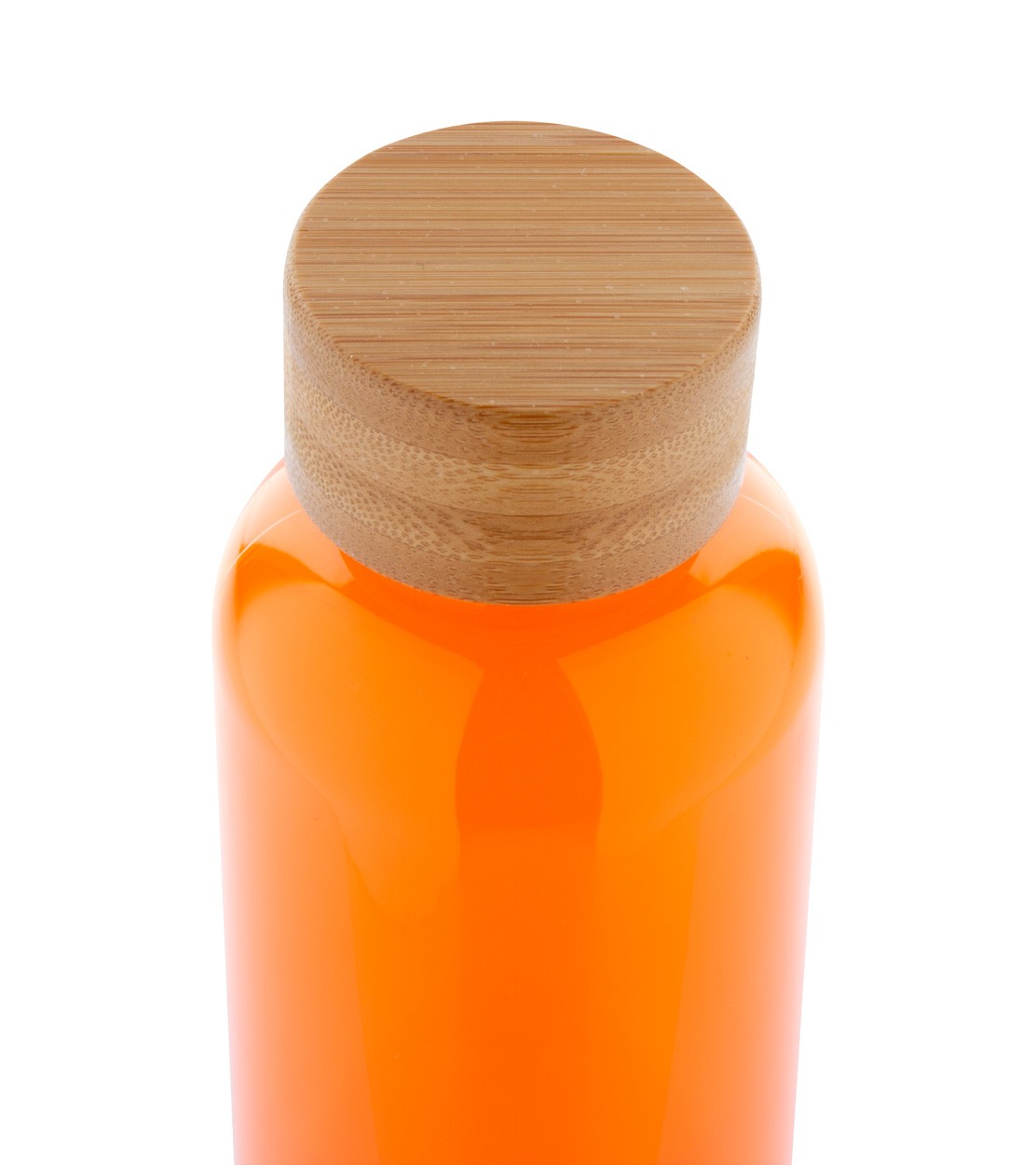 Sticlă RPET, cu capac din bambus, 500 ml. Fără BPA. Nu este potrivită pentru băuturi carbogazoase.