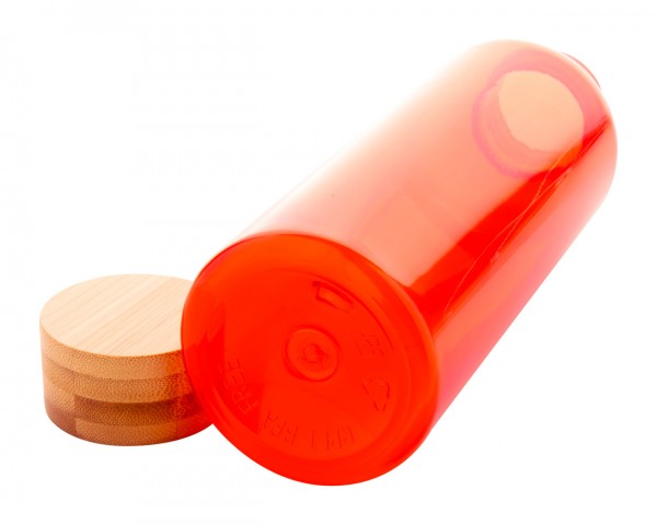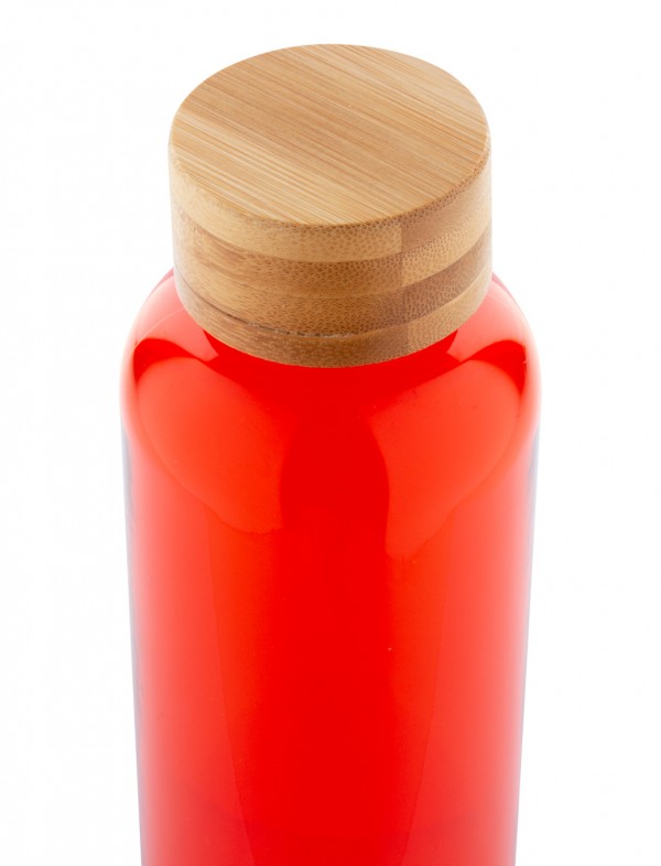 Sticlă RPET, cu capac din bambus, 500 ml. Fără BPA. Nu este potrivită pentru băuturi carbogazoase.