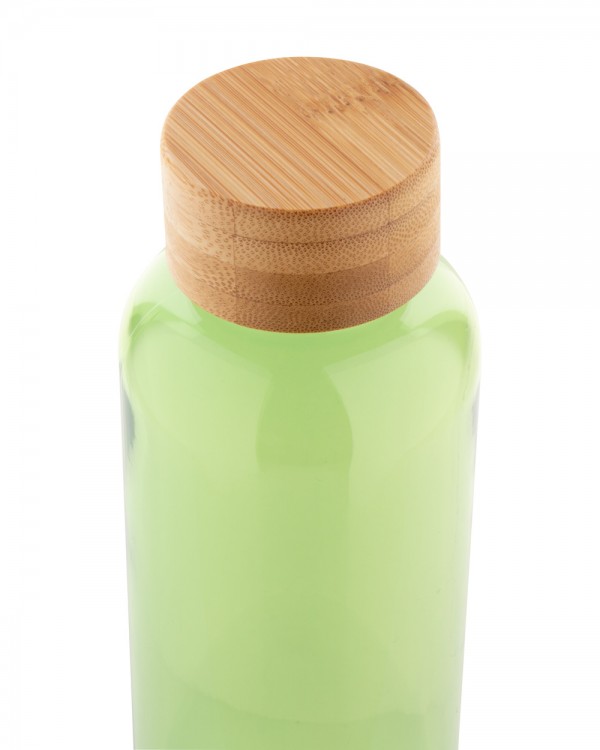 Sticlă RPET, cu capac din bambus, 500 ml. Fără BPA. Nu este potrivită pentru băuturi carbogazoase.