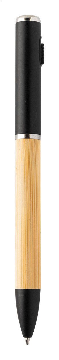 Pix din bambus și plastic ABS reciclat, cu 1 lanternă LED. Cu mină albastră și baterie tip buton.