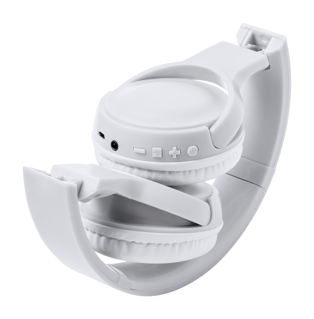 Căști bluetooth, pliabile, cu baterie reîncărcabilă încorporată. Cu apeluri hands-free, redare micro SD MP3 și funcții radio FM. Include mufă audio de 3,5 mm și cabluri de încărcare USB.