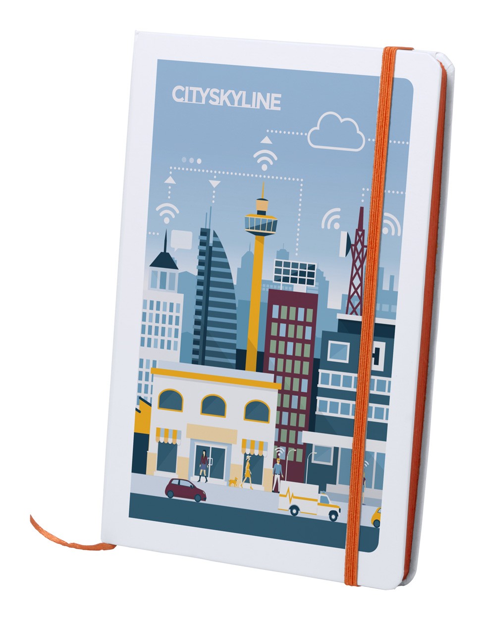 Blocnotes A5 cu copertă din hârtie, cu 100 file veline, cu semn de carte și elastic.