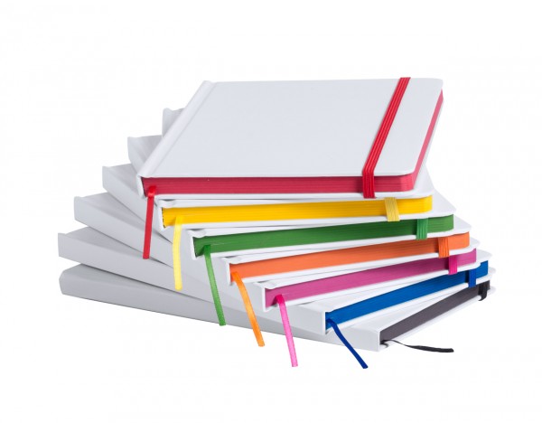 Blocnotes A5 cu copertă din hârtie, cu 100 file veline, cu semn de carte și elastic.