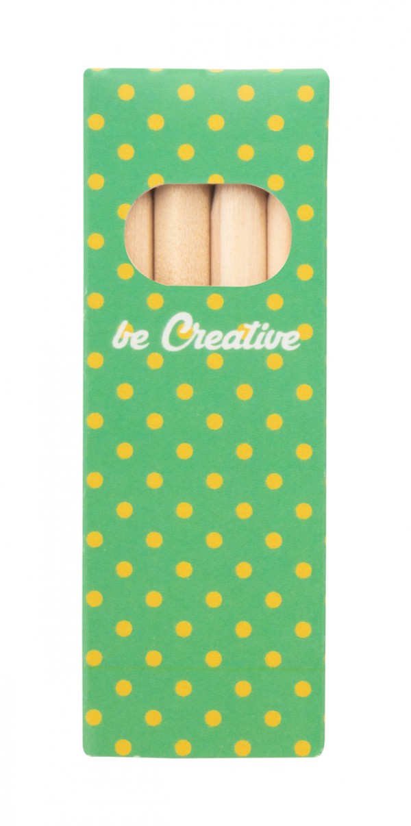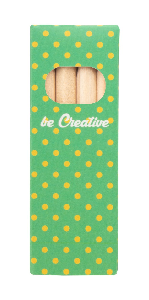 Creioane colorate din lemn (4 buc) în cutie de hârtie kraft personalizată color. Prețul include tipărirea digitală. MOQ: 100 buc.