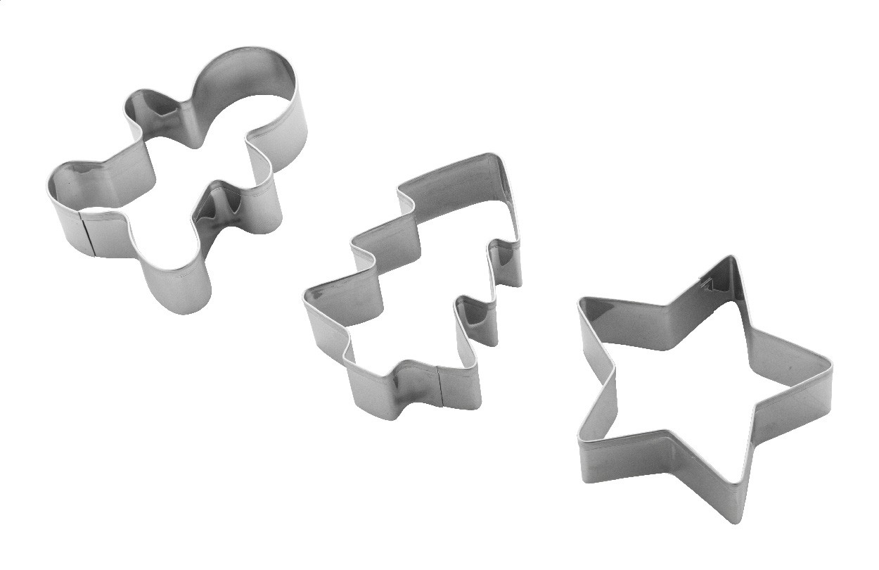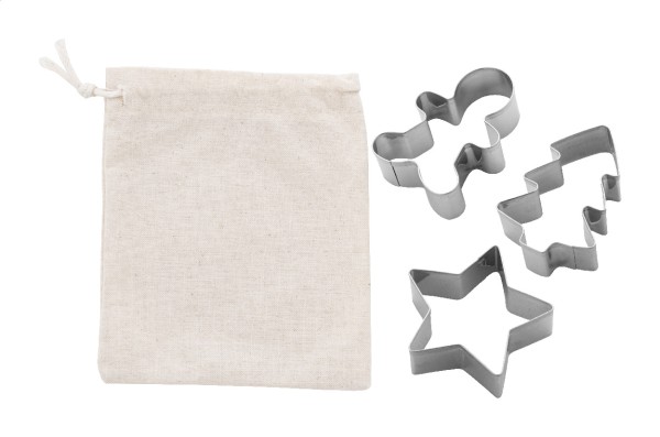 Set de 3 forme de biscuiți, din oțel inoxidabil cu forme de Crăciun, în husă de bumbac cu șnur.