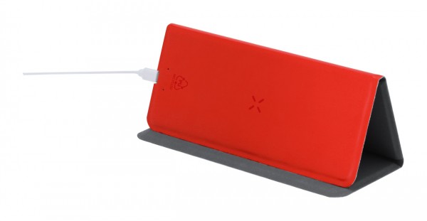Mousepad pliabil, din piele PU reciclată, cu încărcător wireless încorporat (10W) și funcții de suport pentru telefonul mobil. Cu bază anti-alunecare din catifea. Inclusiv cablu de încărcare USB.