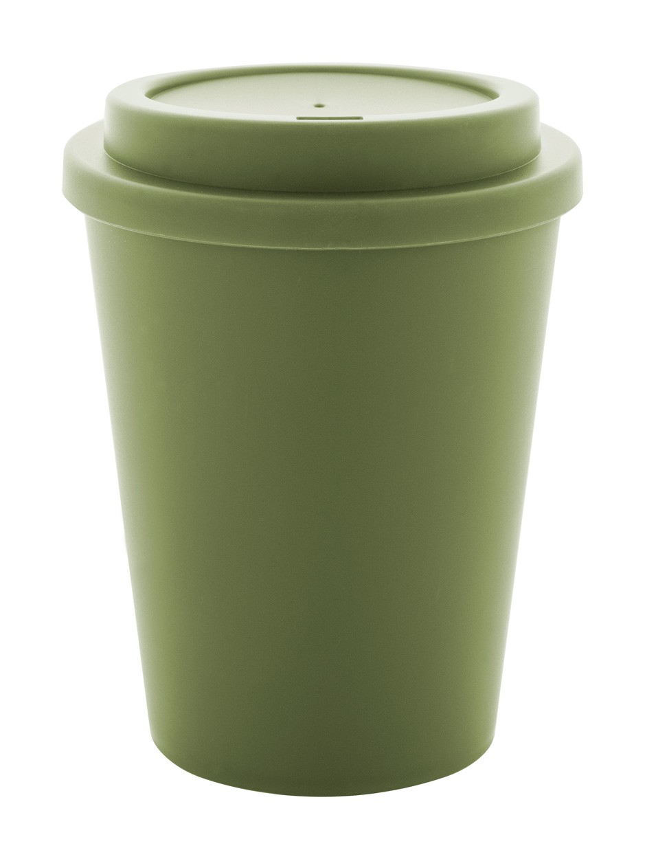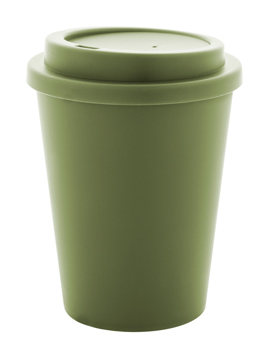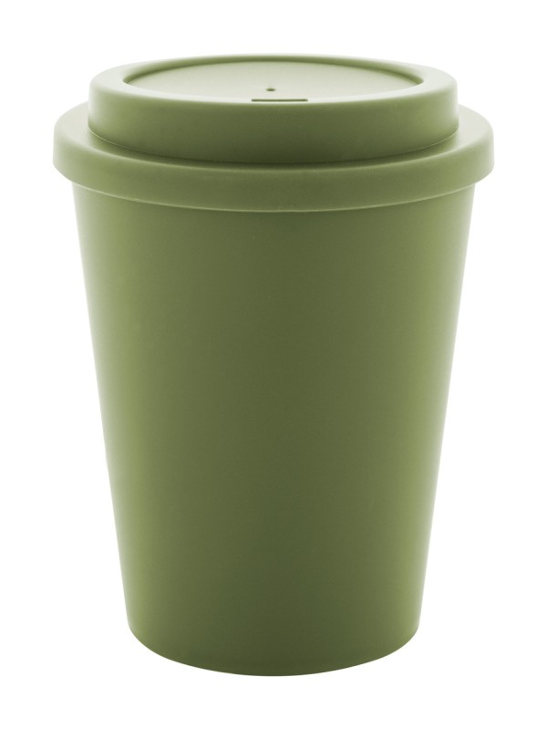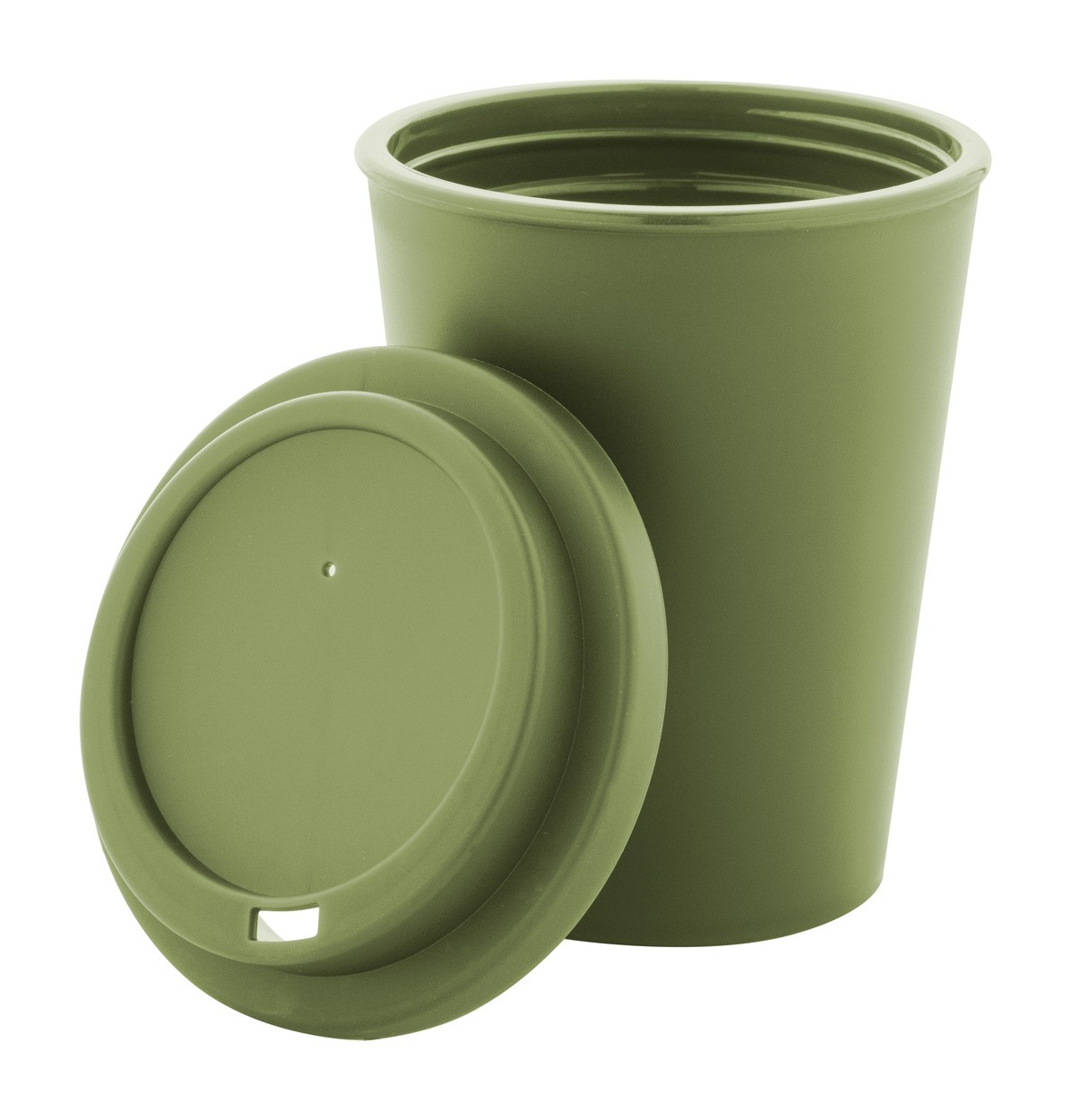 Pahar termoizolant, din plastic PP, cu perete dublu, cu capac de băut. 300 ml.