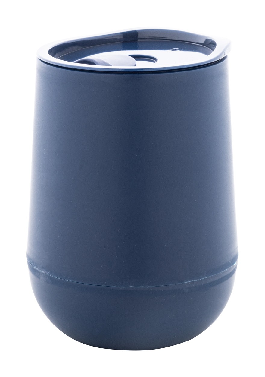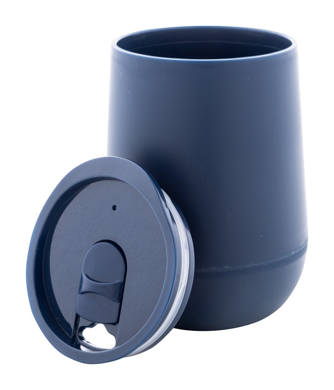 Cană termoizolată, din plastic PP cu perete dublu, cu capac de băut. 300 ml.