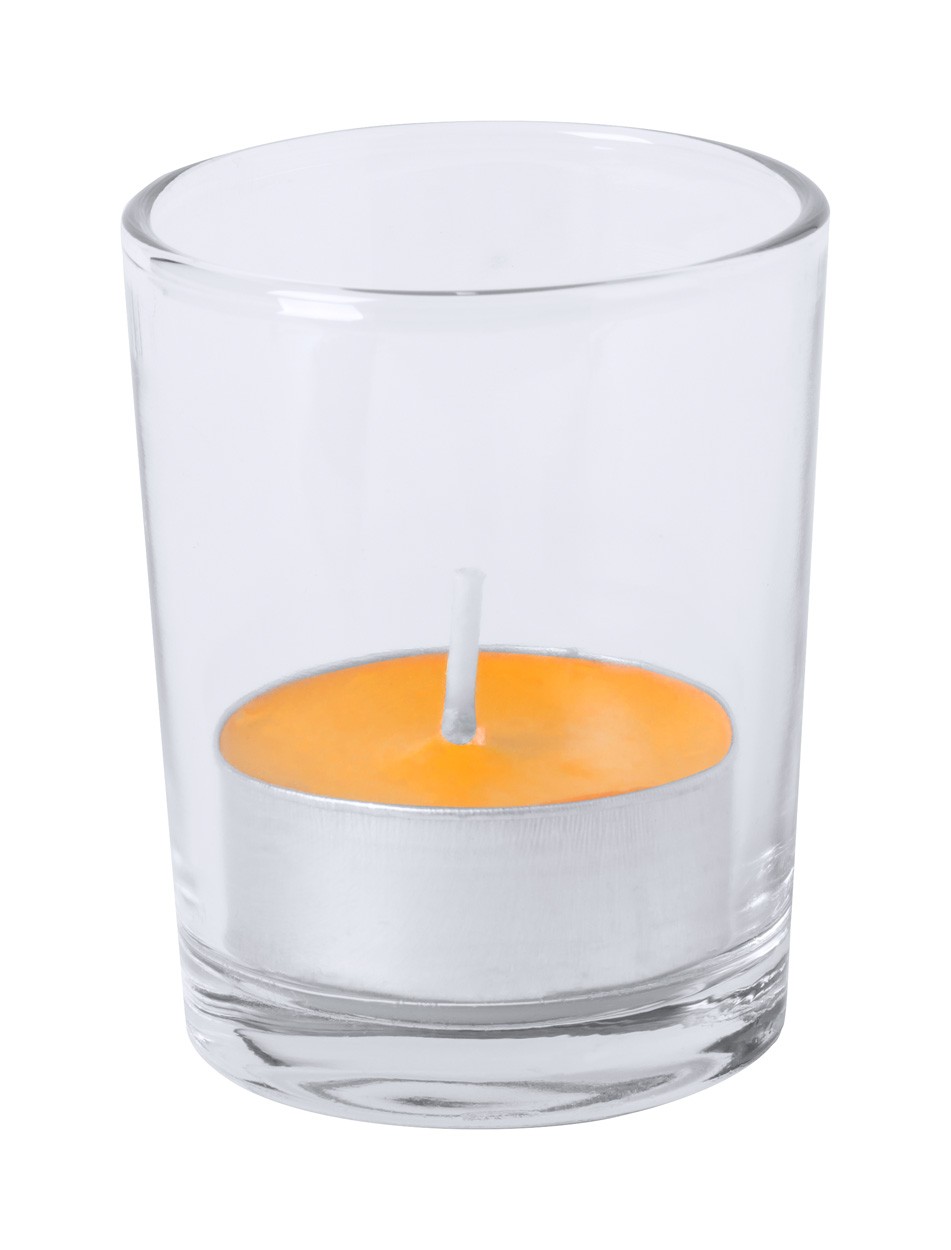 Lumânare parfumată în pahar de sticlă. În cutie de cadou din hârtie.