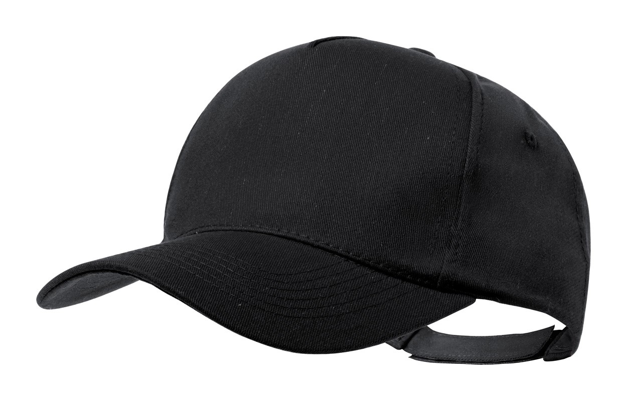 Șapcă baseball din polycotton reciclat cu 5 panouri și închidere cu velcro. 60% bumbac reciclat și 40% amestec de poliester reciclat, 160 g/m².
