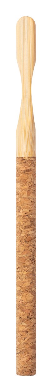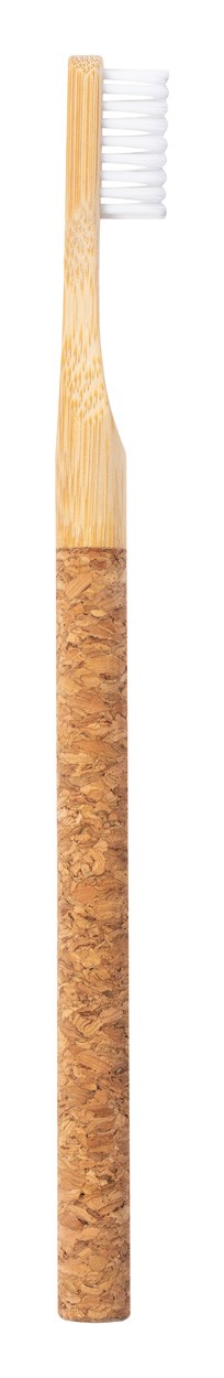 Periuță de dinți din bambus și plută naturală, cu peri albi.
