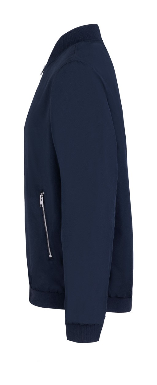 Jachetă bomber, rezistentă la vânt și apă, cu fermoar și buzunare laterale cu fermoar. 100% Poliester.