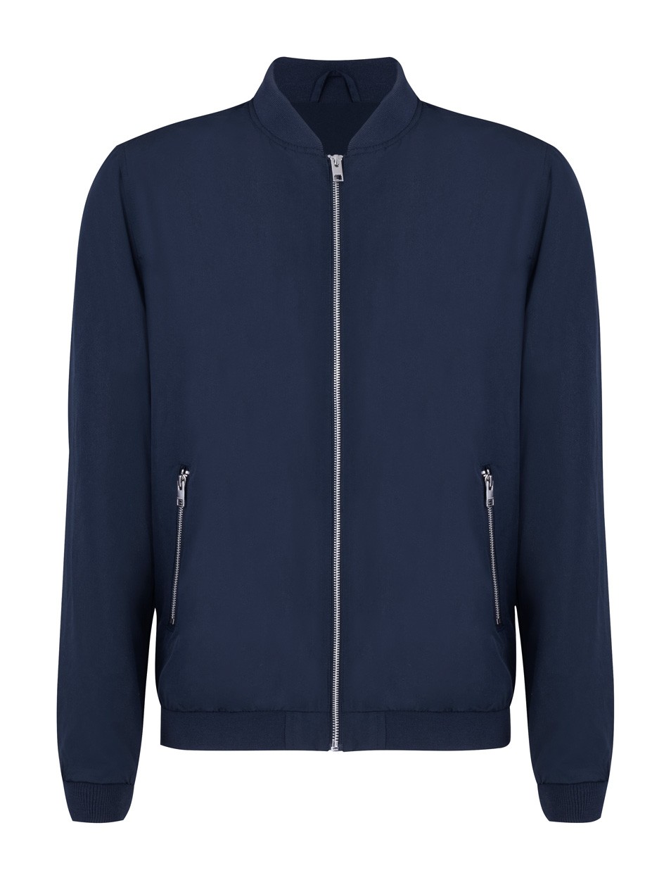 Jachetă bomber, rezistentă la vânt și apă, cu fermoar și buzunare laterale cu fermoar. 100% Poliester.