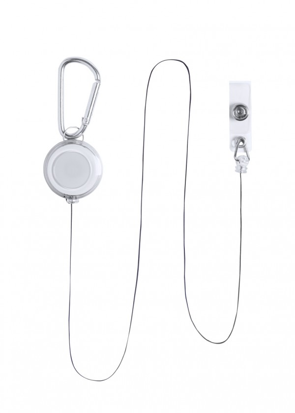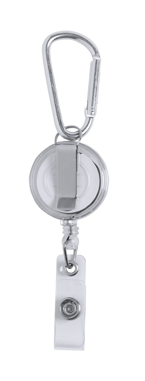 Suport ecuson telescopic din plastic, cu capsă și carabină din aluminiu.