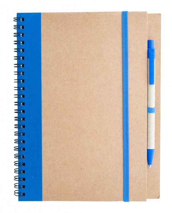 Din hârtie reciclabilă, 60 file veline, cu pix din carton.