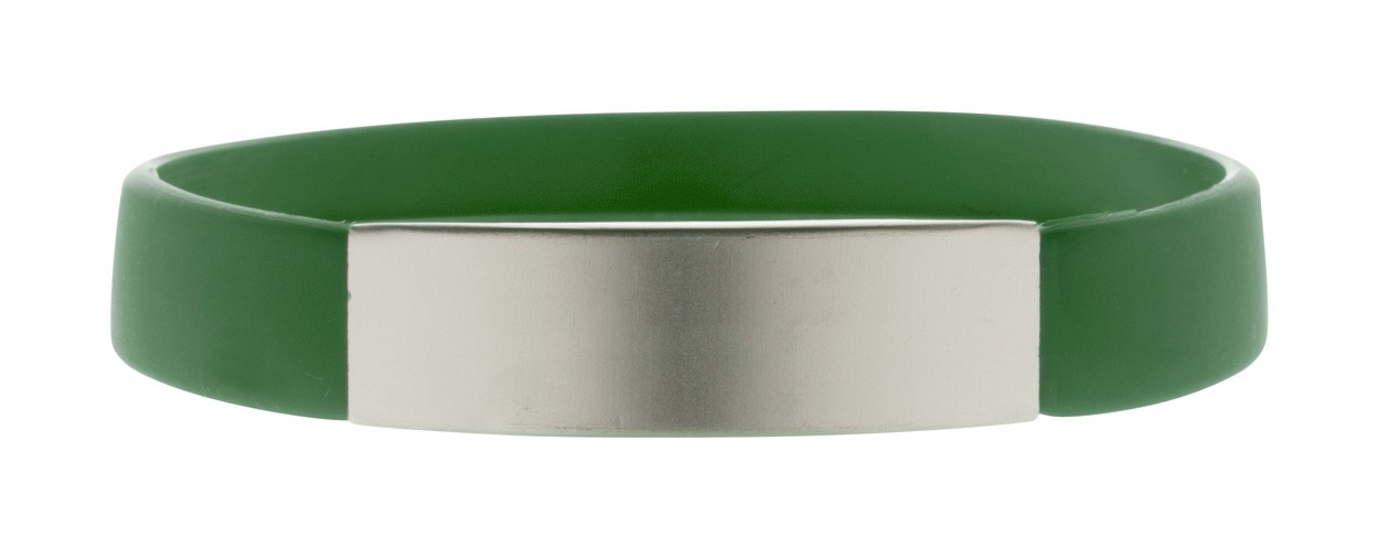 Brățară din silicon cu plăcuță argintie din aluminiu.