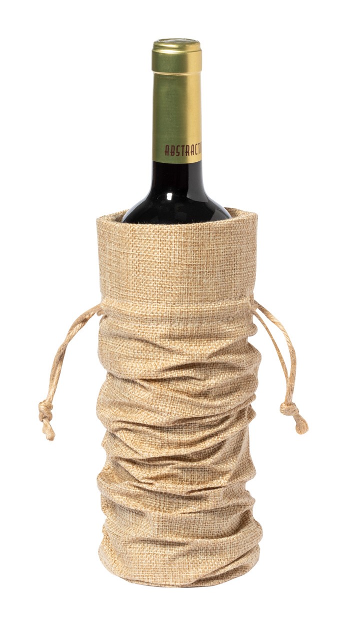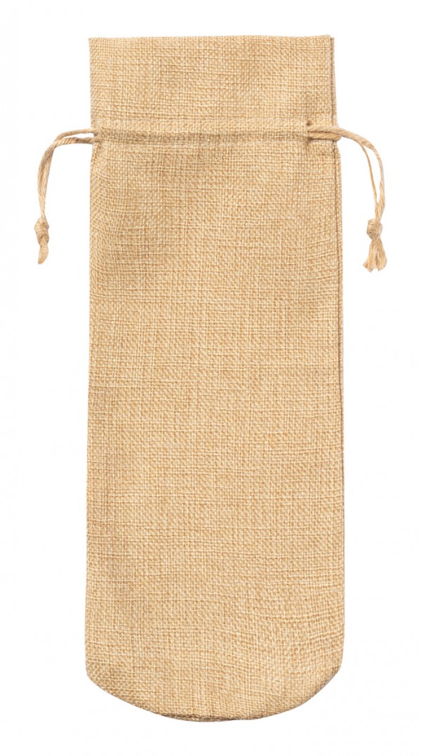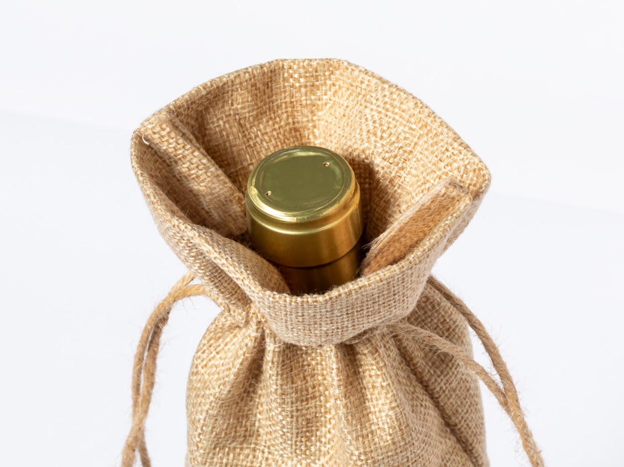 Geantă cadou, pentru 1 sticlă de vin, cu cordon din poliester, cu țesătura de iută.
