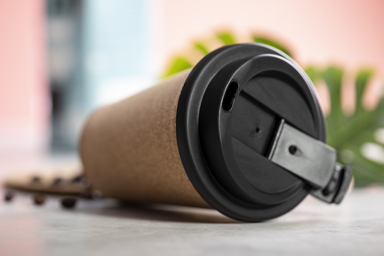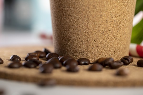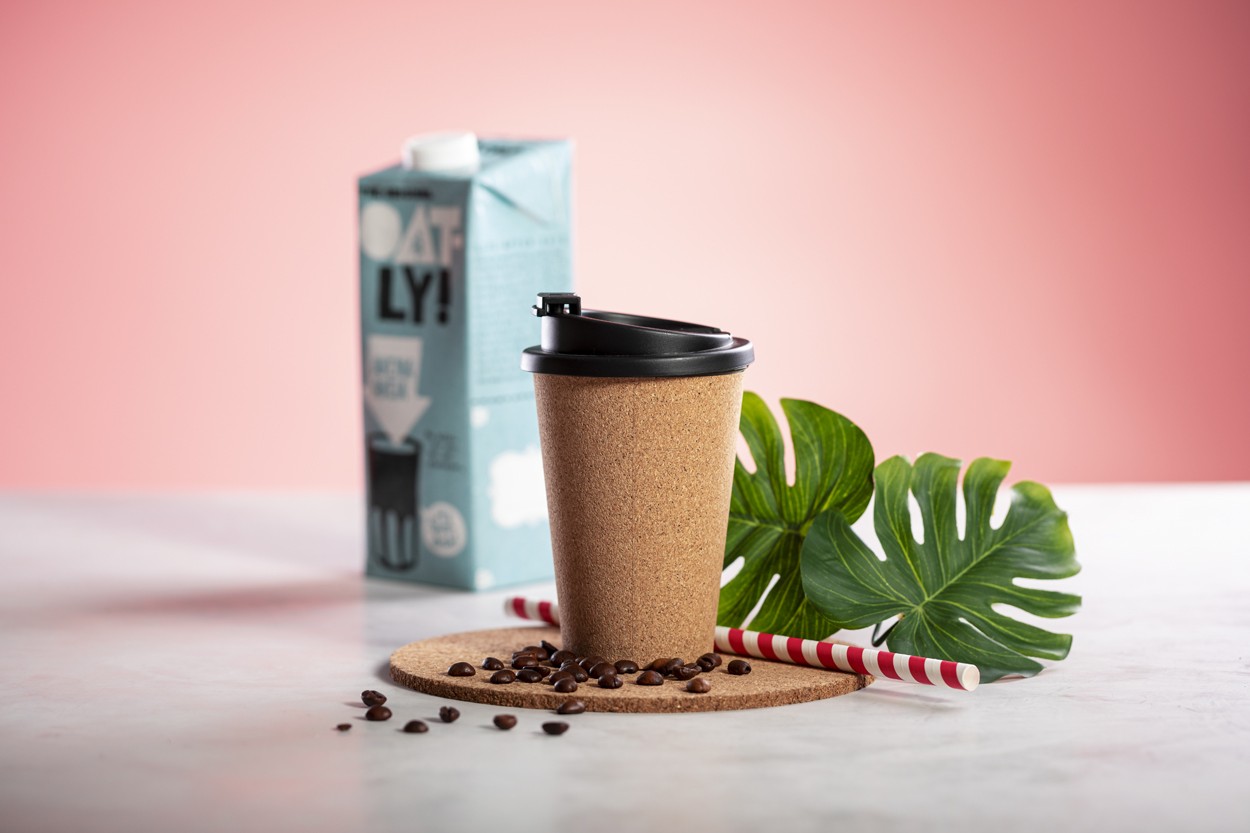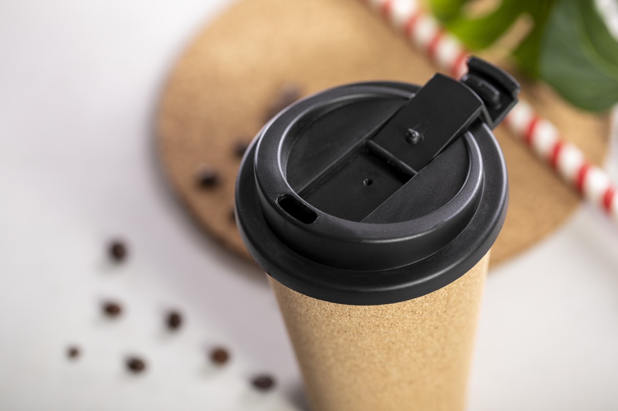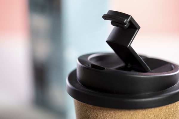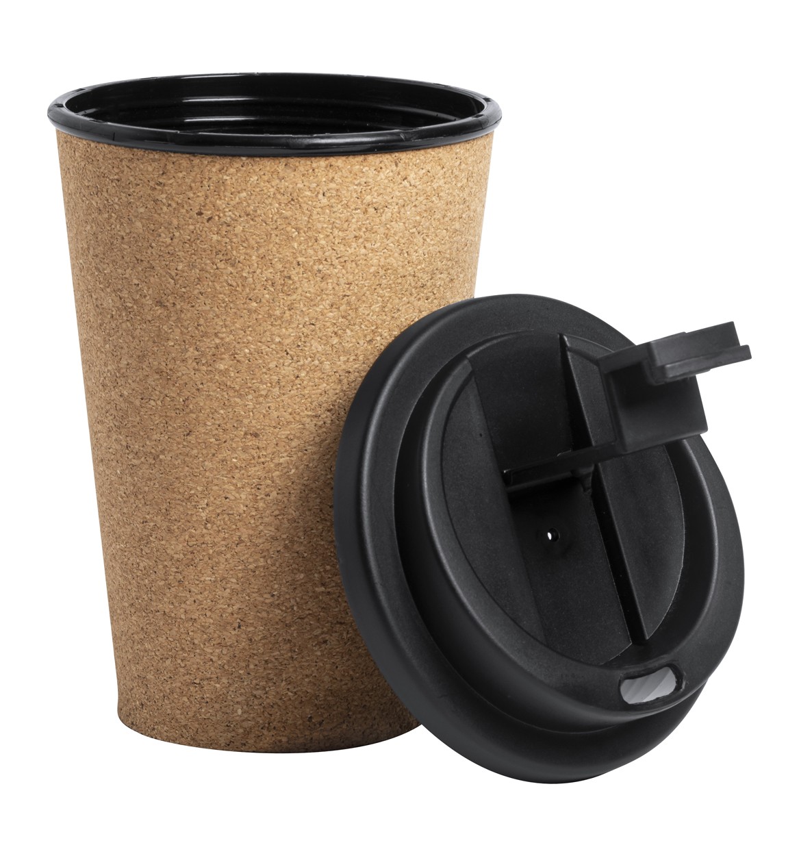 Cană termos din plastic cu un singur perete, înveliș din plută, cu capac de siguranță, 350 ml. Fără BPA.