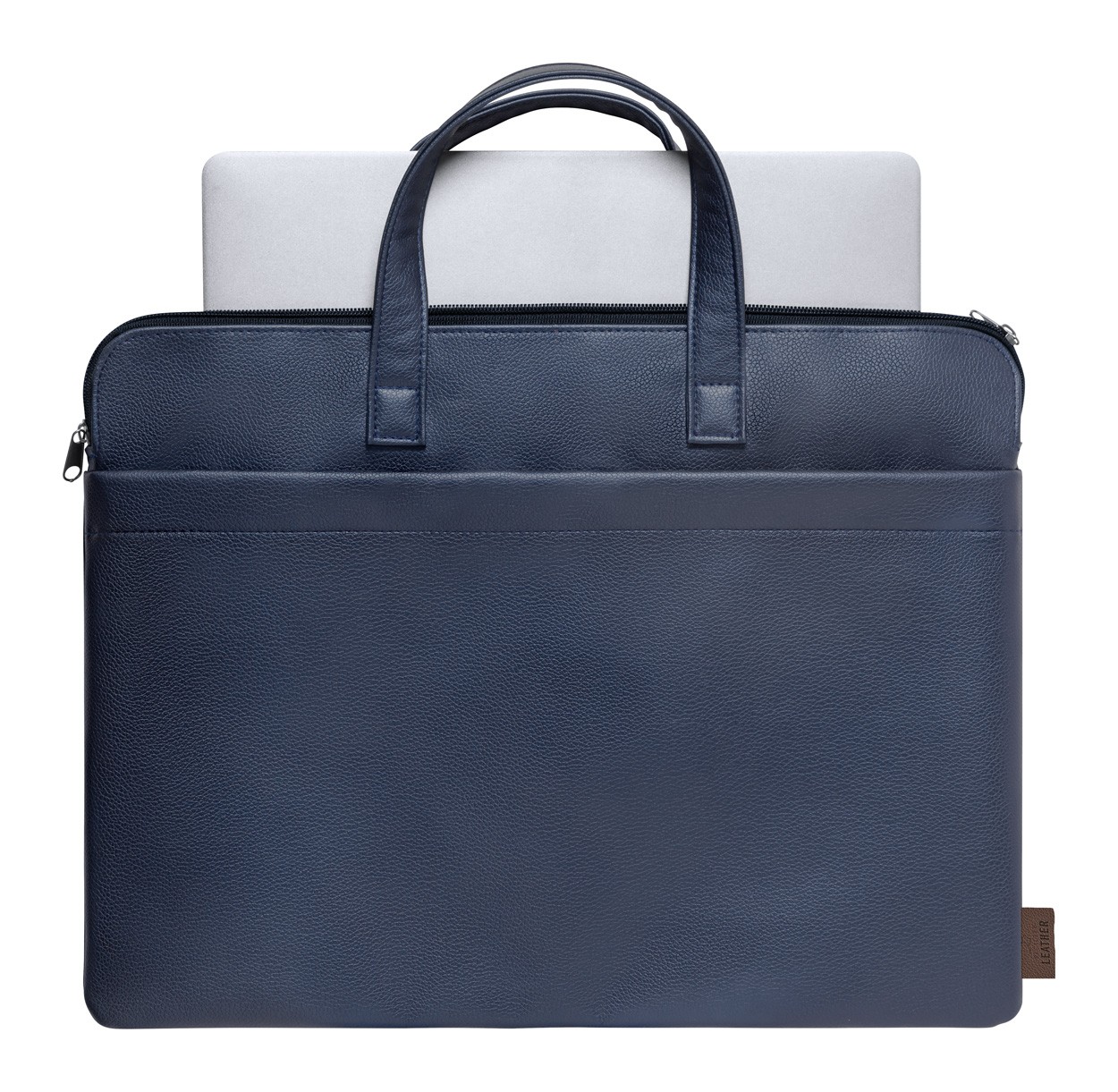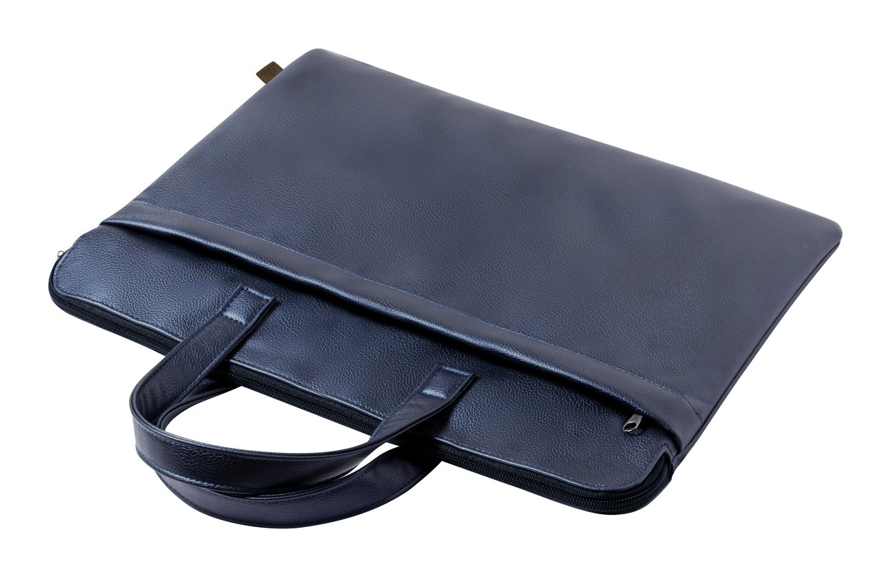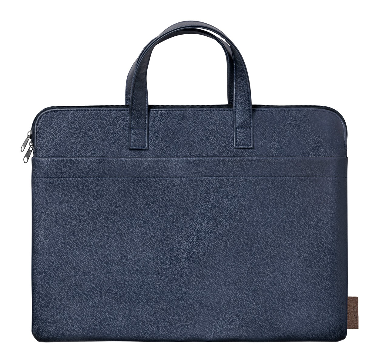 Geantă pentru documente, din piele reciclată, cu compartimente căptușite, cu fermoar și mânere întărite. Cu etichetă distinctivă din piele reciclată.