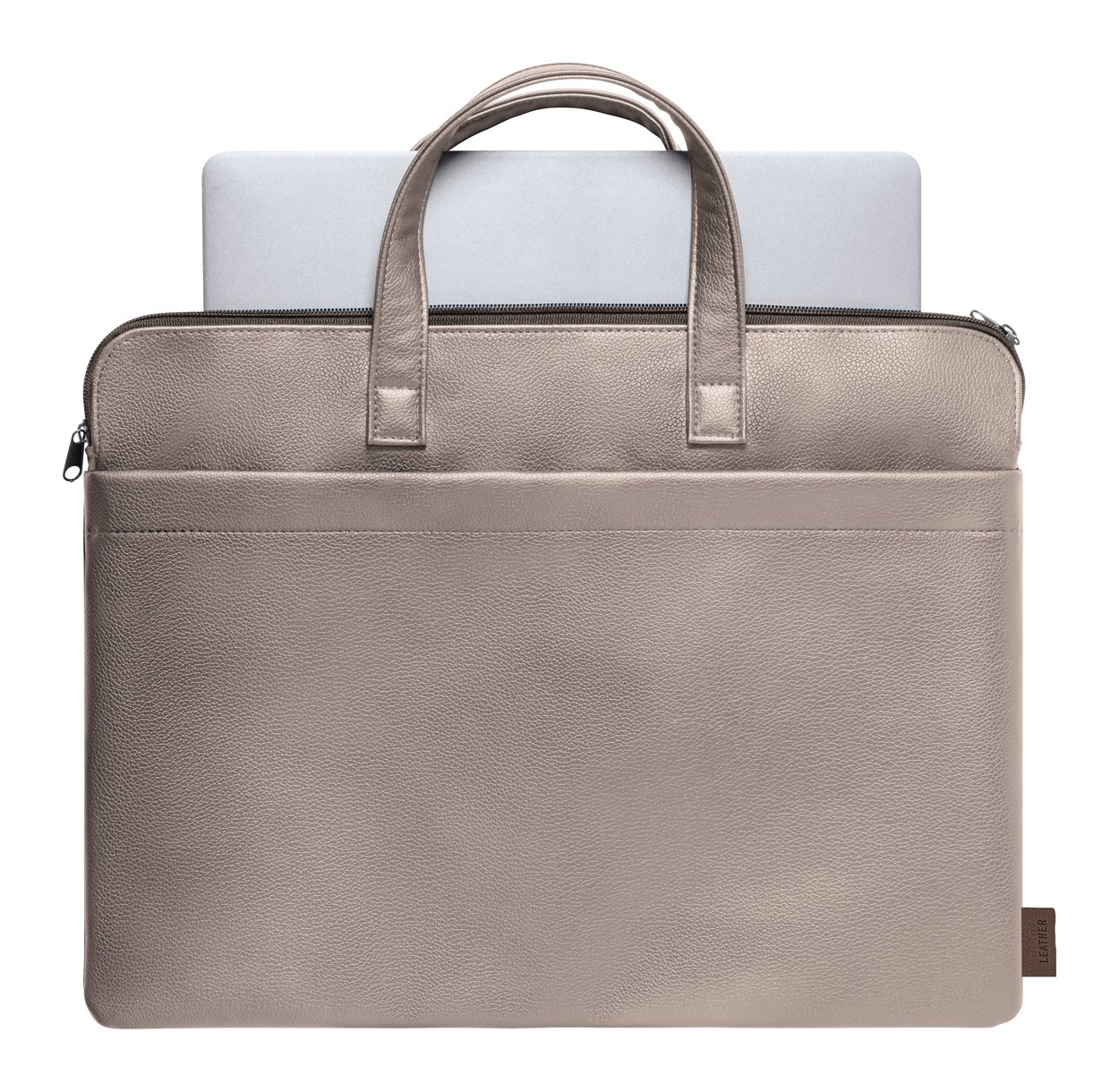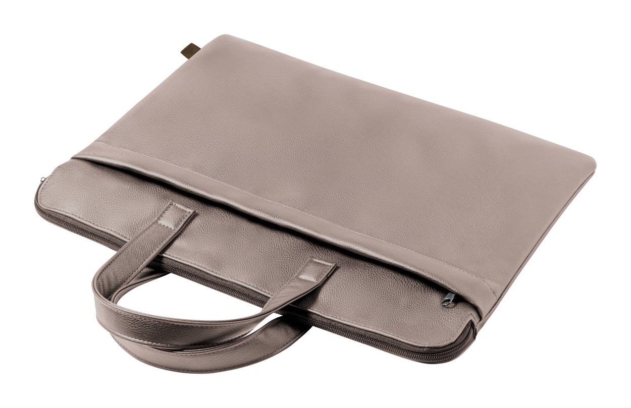 Geantă pentru documente, din piele reciclată, cu compartimente căptușite, cu fermoar și mânere întărite. Cu etichetă distinctivă din piele reciclată.