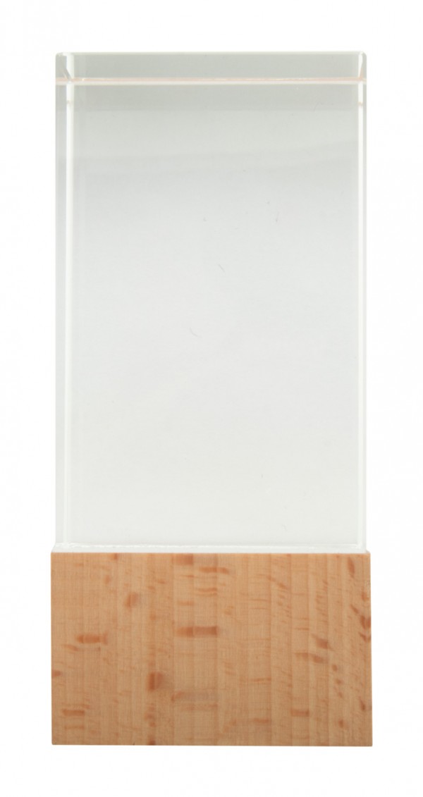 Trofeu din sticlă cu baza din lemn de fag. În cutie de cadou kraft.
