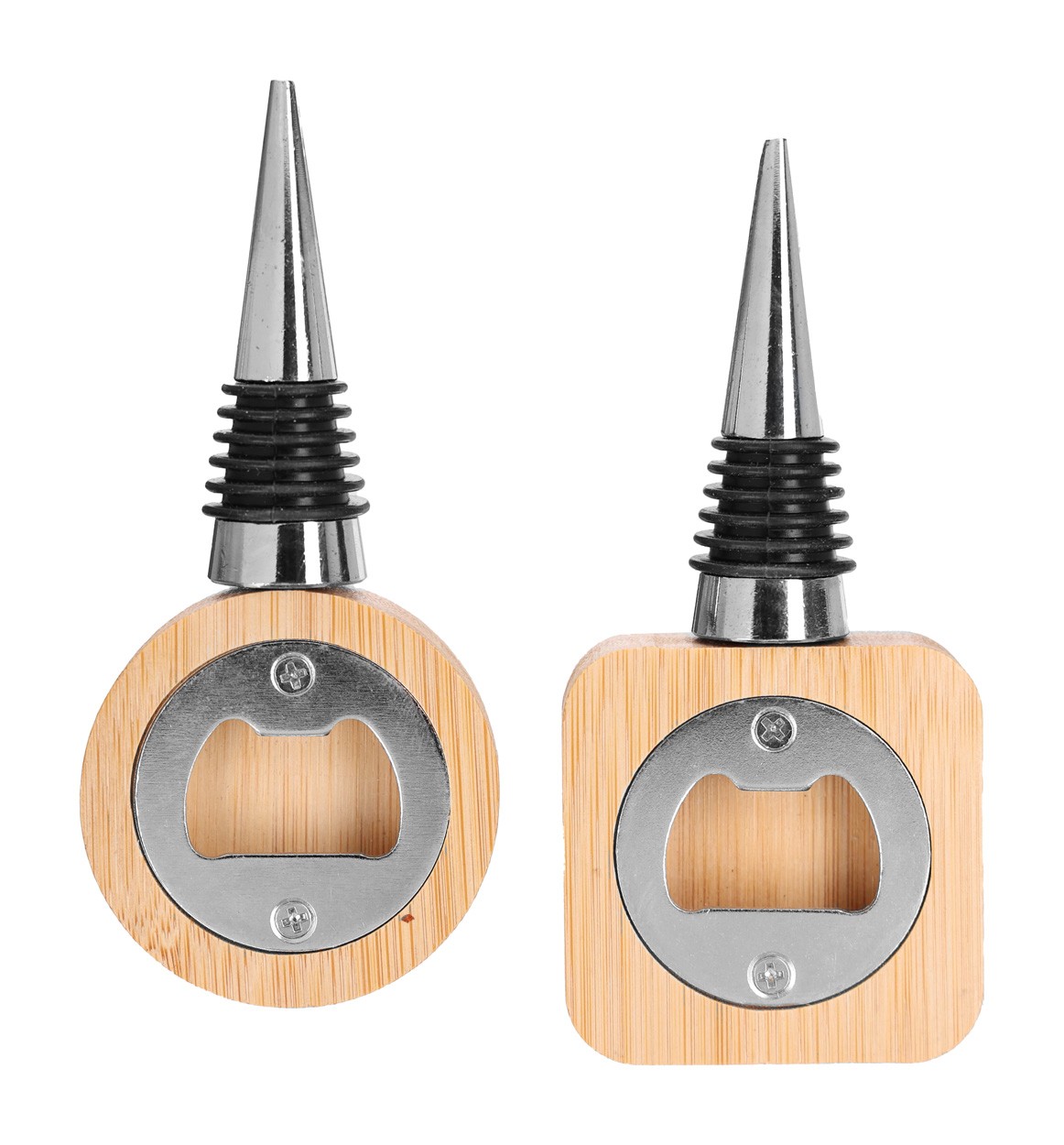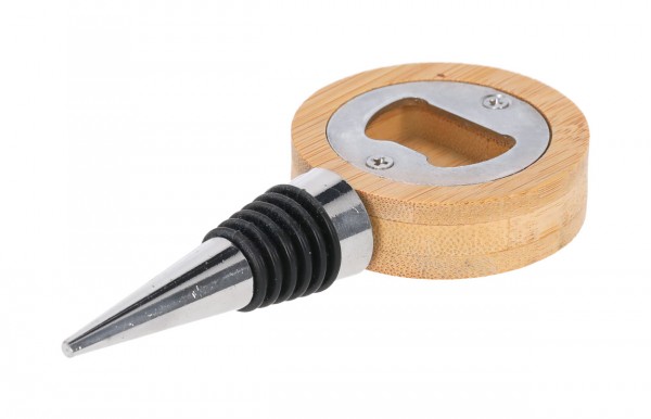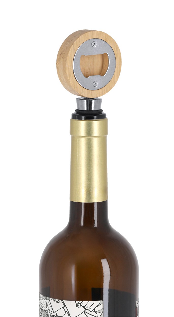 Dop pentru sticle din bambus și oțel inoxidabil cu deschizător de sticle.
