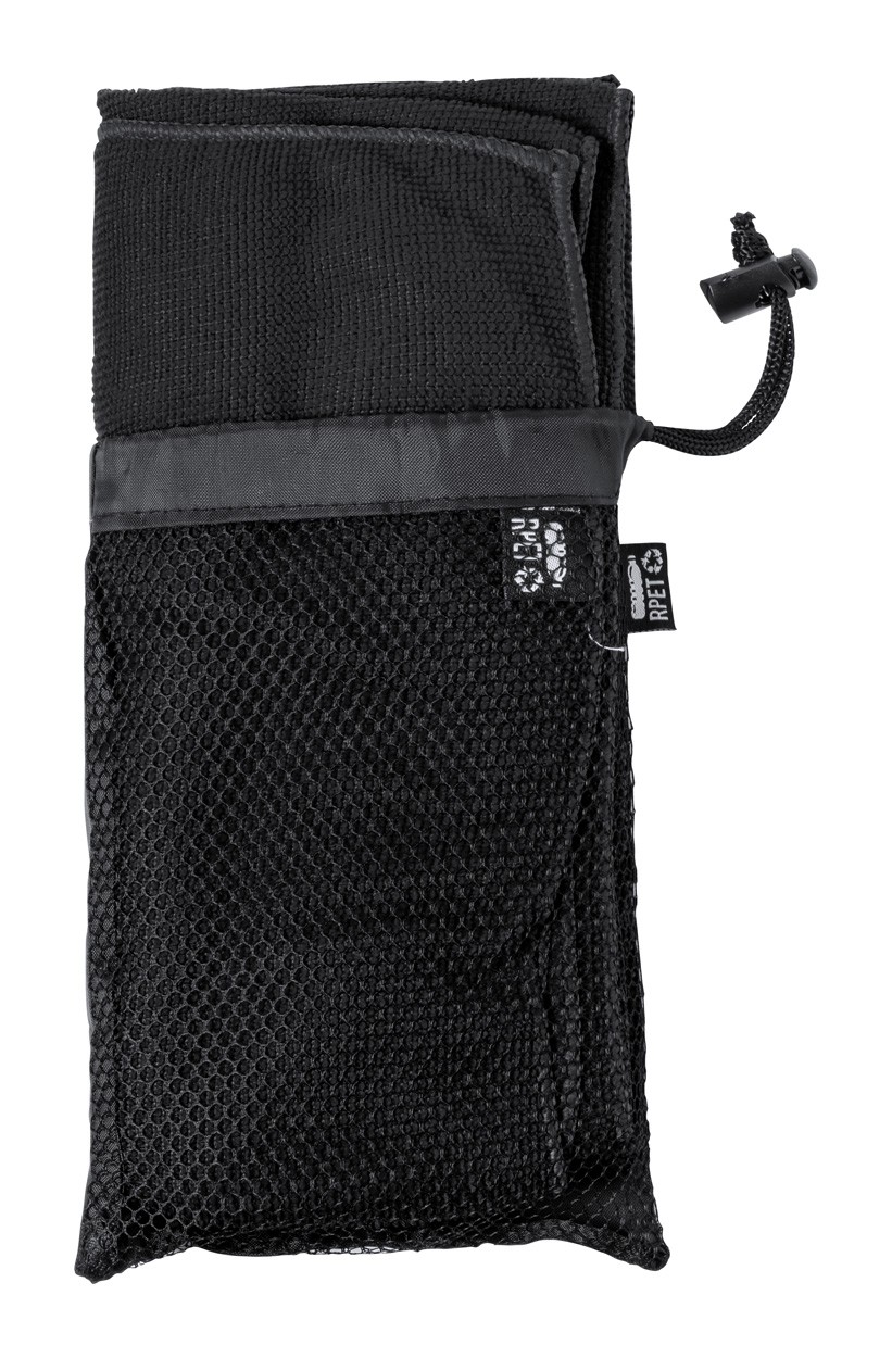 Prosop sport din microfibră în husă de transport RPET cu etichetă RPET distinctă. Poliester RPET, 160 g/m².