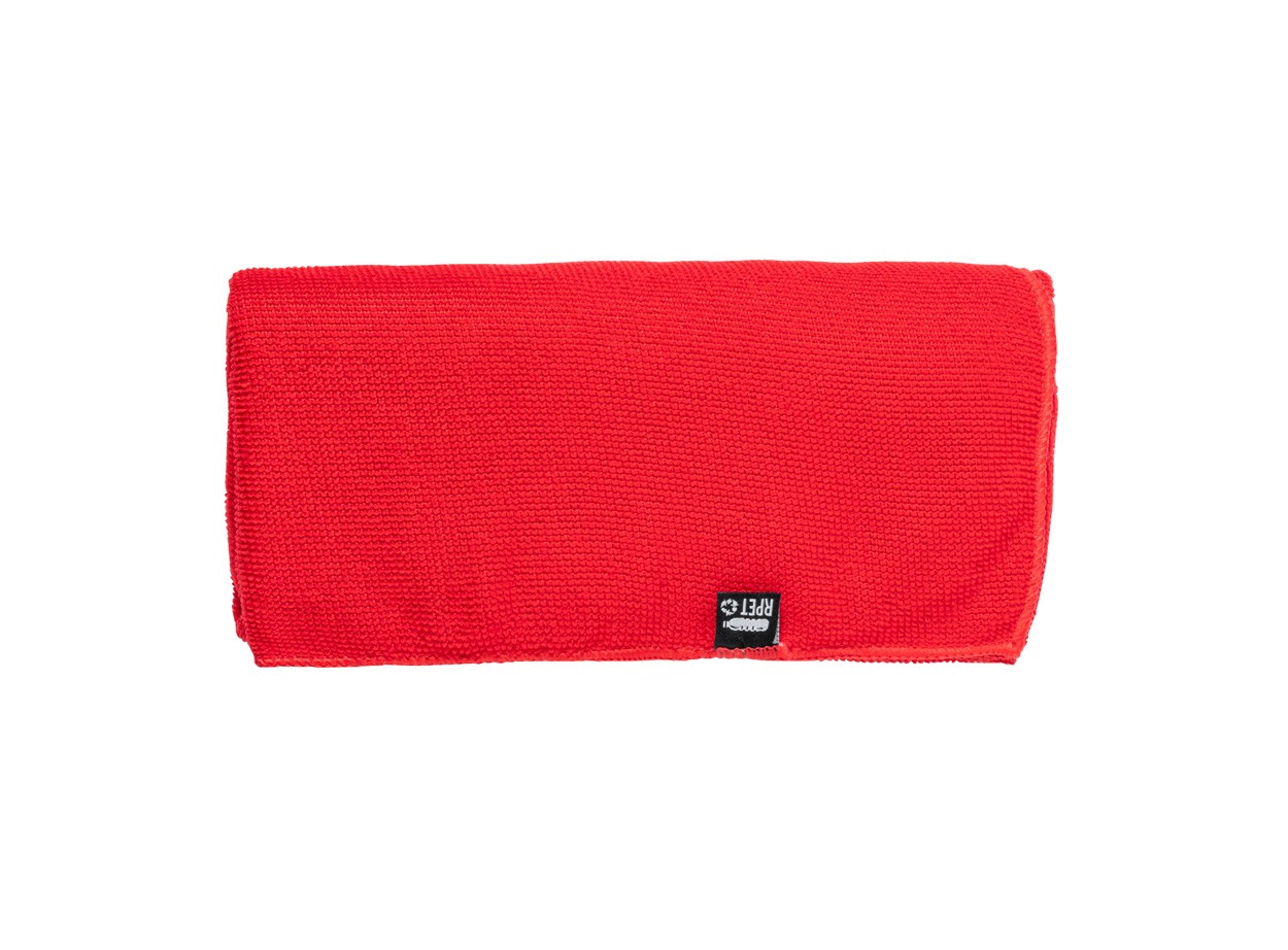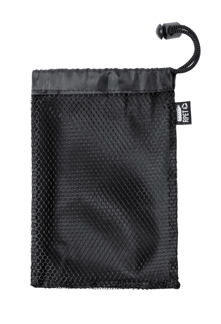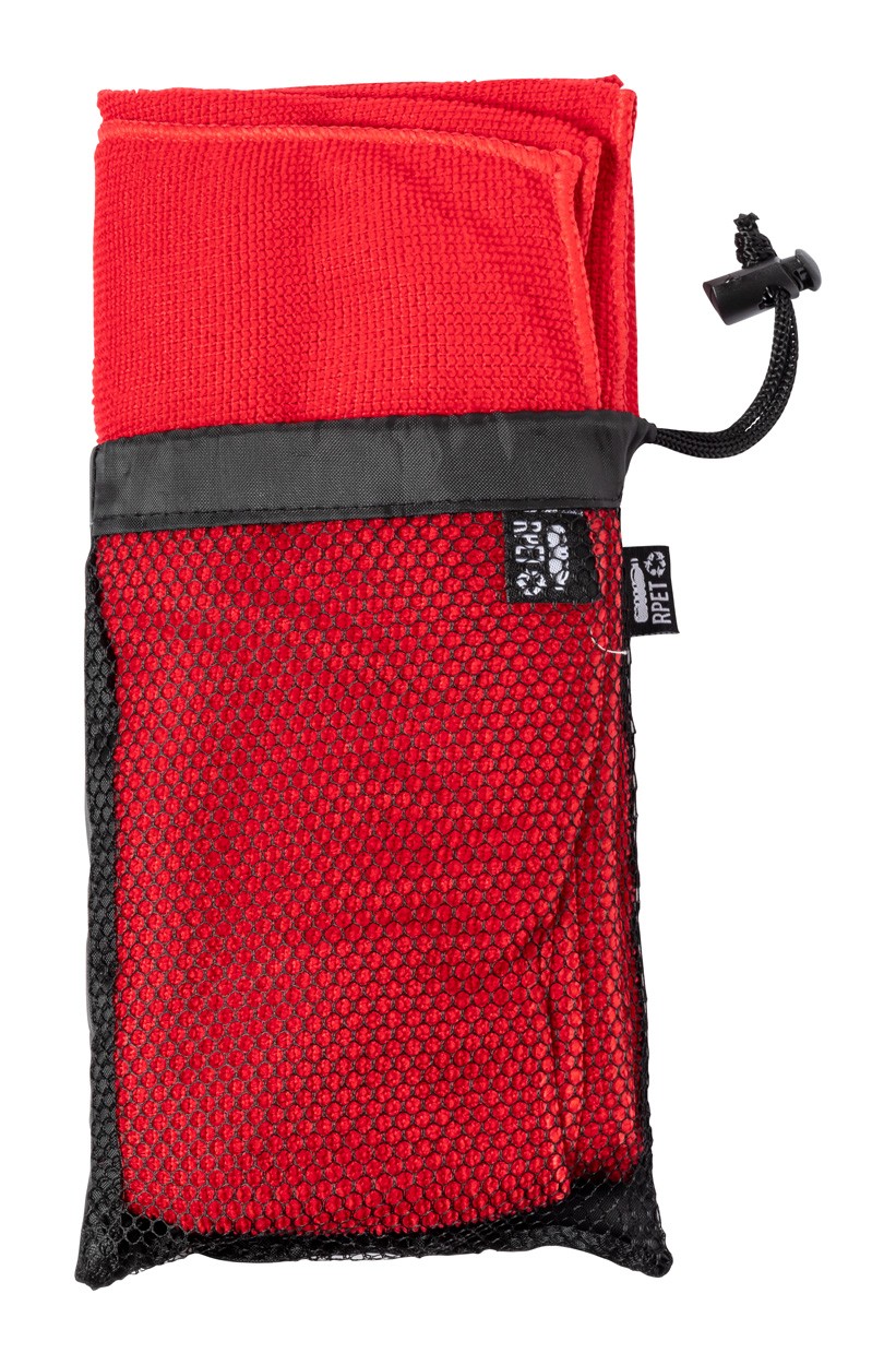 Prosop sport din microfibră în husă de transport RPET cu etichetă RPET distinctă. Poliester RPET, 160 g/m².