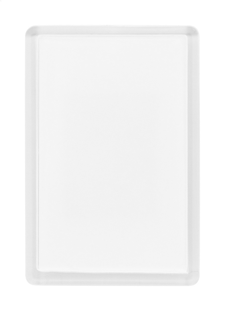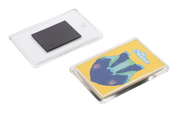 Magnet de frigider, acrilic, de formă dreptunghiulară, cu inserție de hârtie personalizată color. Prețul include imprimare digitală. MOQ: 100 buc.