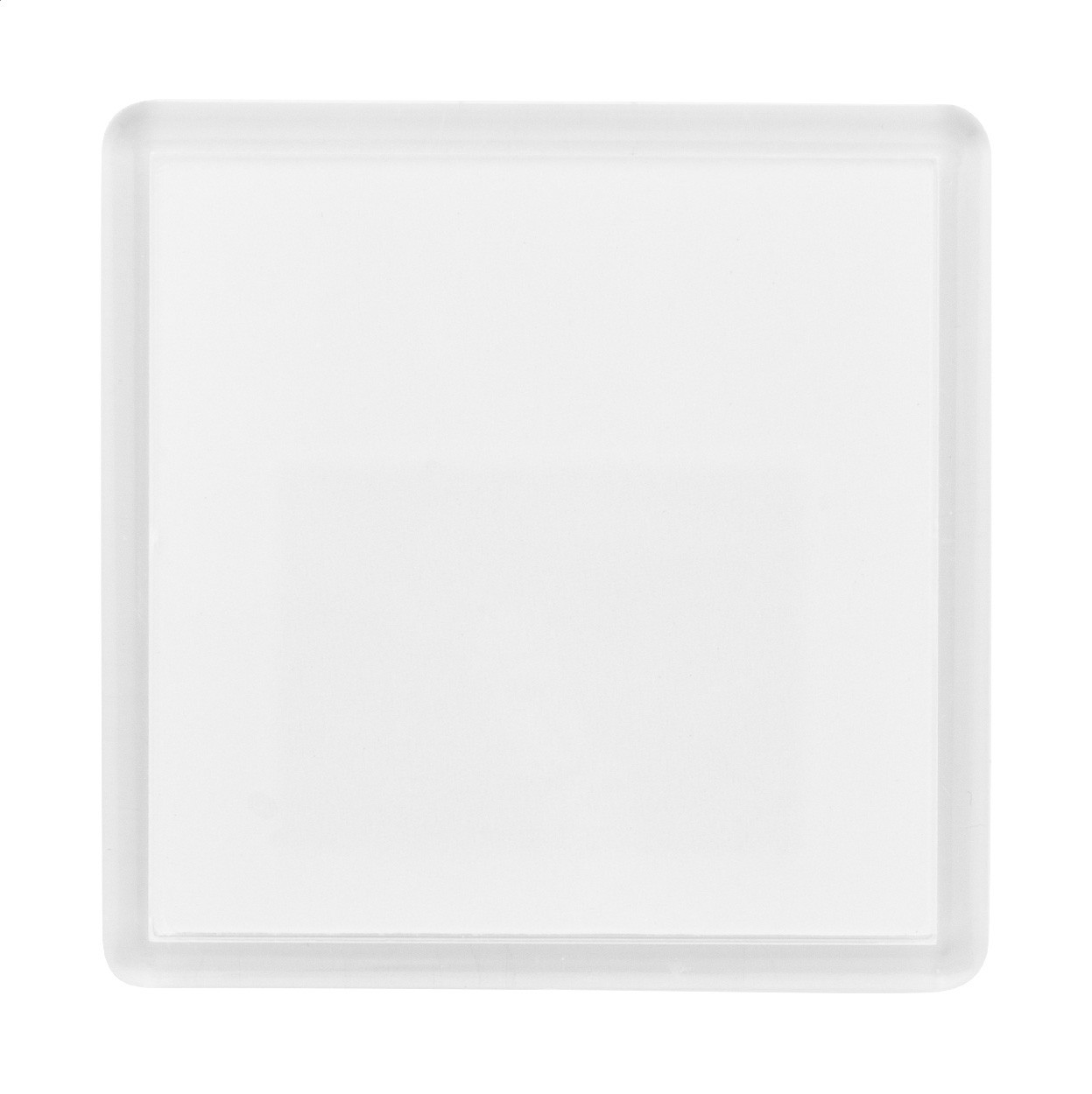 Magnet de frigider, acrilic, de formă pătrată, cu inserție de hârtie personalizată color. Prețul include imprimare digitală. MOQ: 100 buc.
