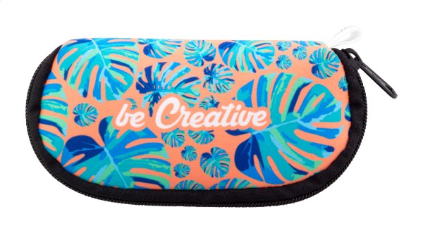 Husă de ochelari de soare, din neopren RPET, realizată la comandă, cu compartiment cu fermoar. Grafică imprimată prin sublimare pe toată suprafața și etichetă distinctivă din RPET. Prețul include imprimarea prin sublimare. MOQ: 50 buc.