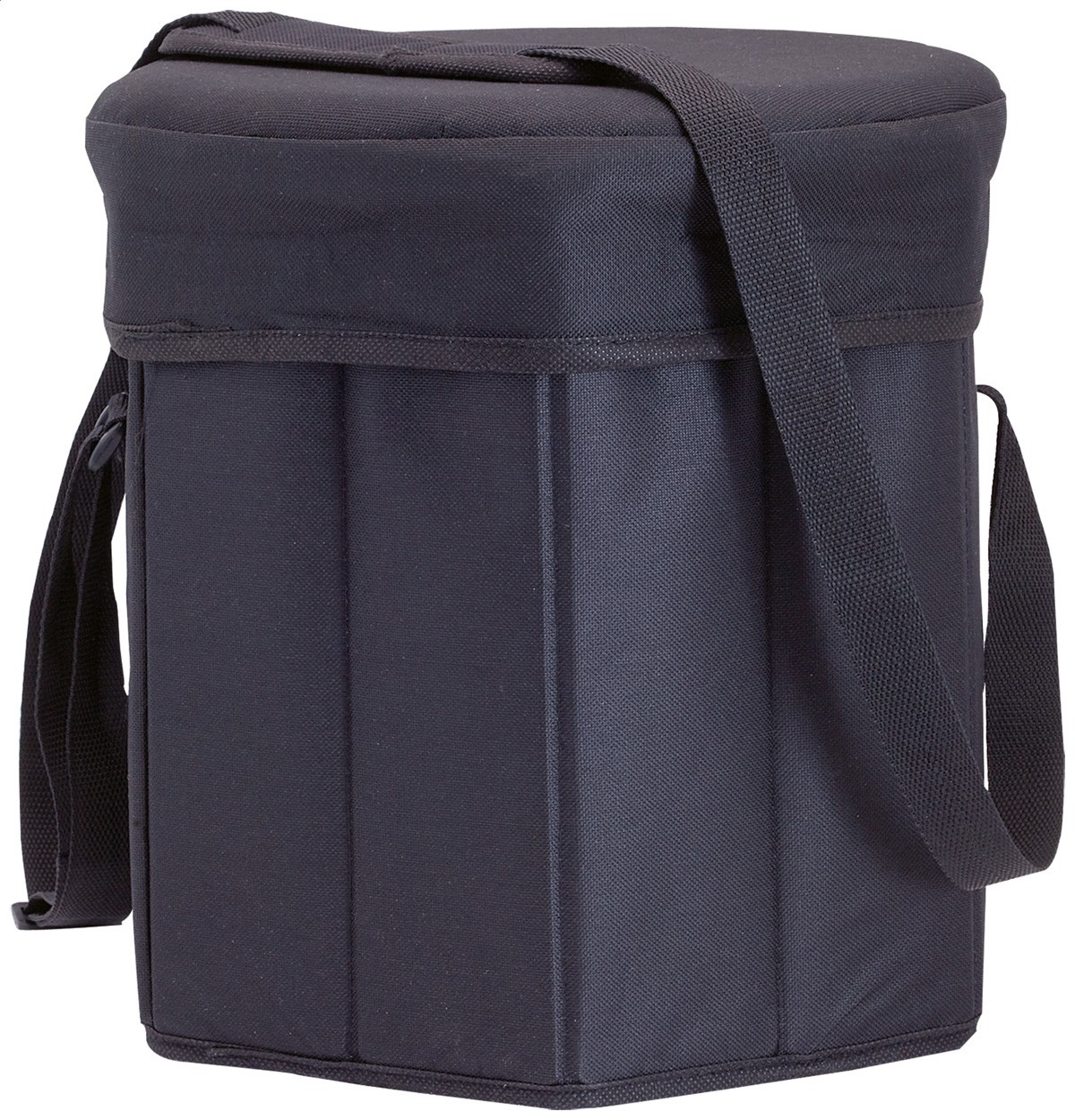 Geantă frigorifică pliabilă, hexagonală și taburet cu curea de umăr. Material: Poliester 600D, aluminiu.