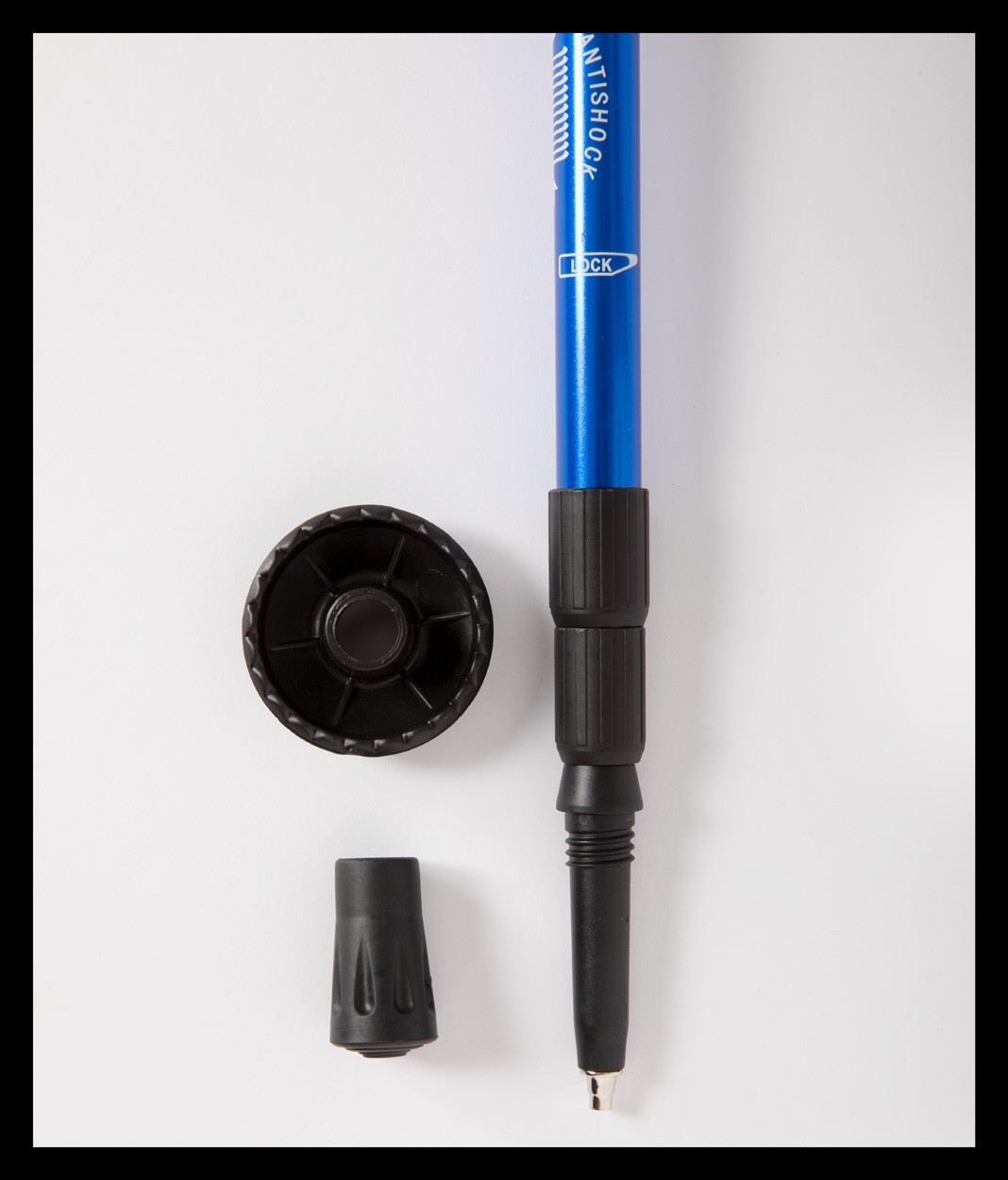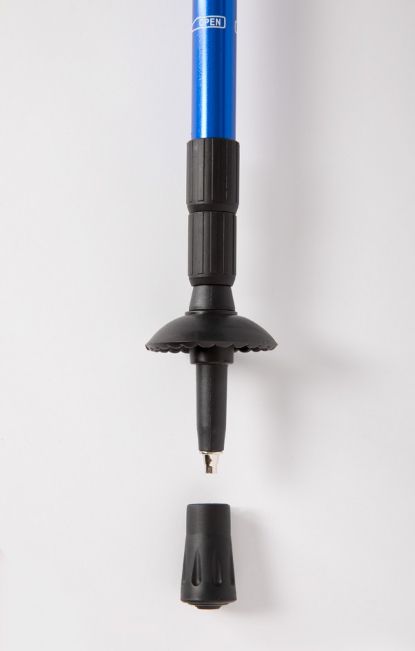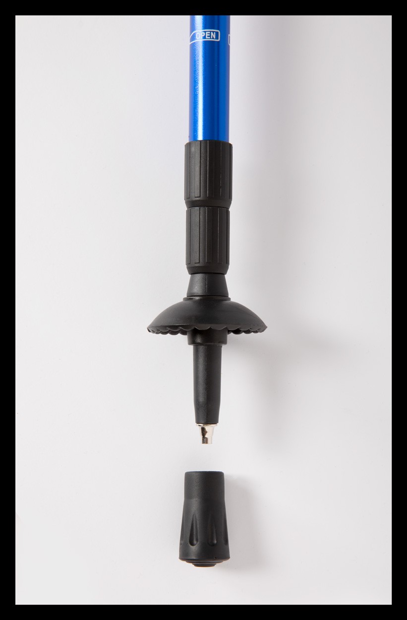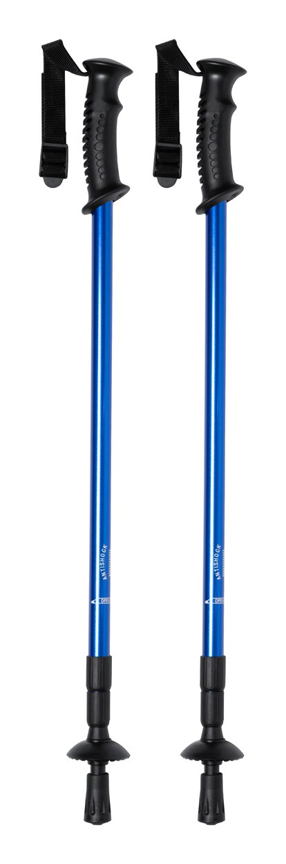 2 bețe telescopice din aluminiu pentru drumeții. Mânere ergonomice, curele de încheietură și sistem anti-șoc, capete pentru zăpadă. În geantă.