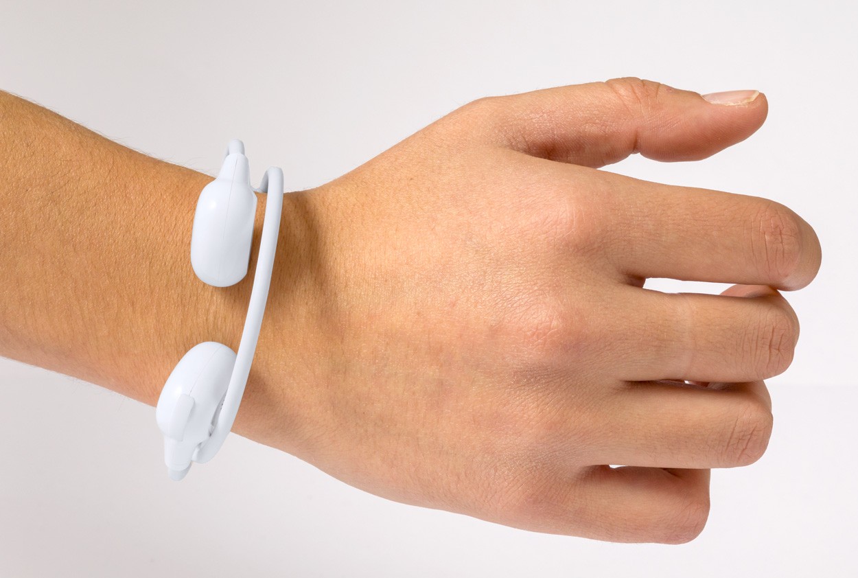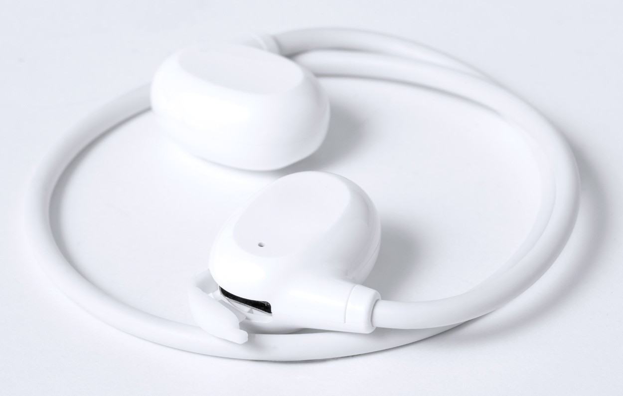 Foldable bluetooth earphones with hands-free call and bracelet functions. Including USB charger cable.