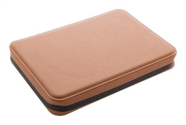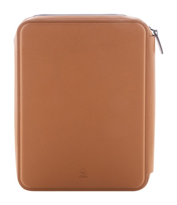 Mapă documente, de lux, cu fermoar pentru documente, din piele PU reciclată, cu blocnotes cu 64 de foi dictando din hârtie reciclată. Prezintă mai multe buzunare interioare pentru cărți de vizită și documente. Dimensiune A5.