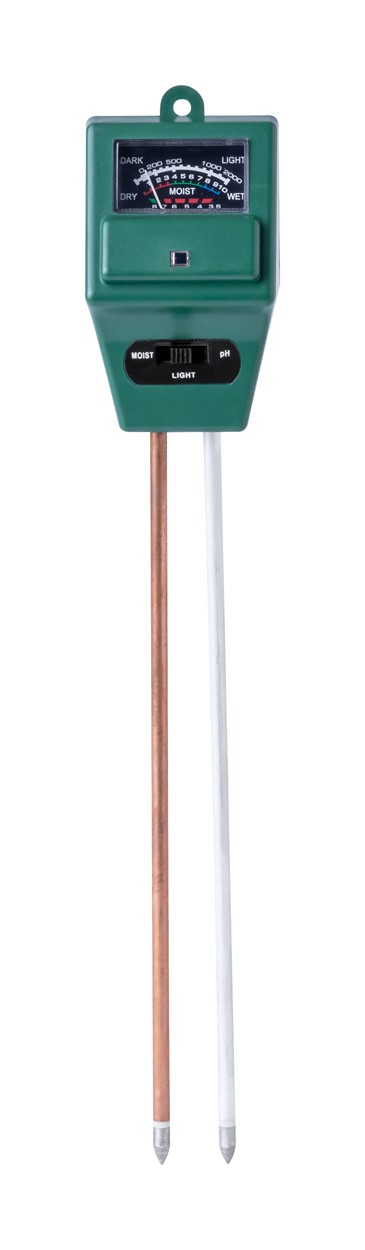 3in1 soil hygrometer, measures humidity, pH and light exposure.