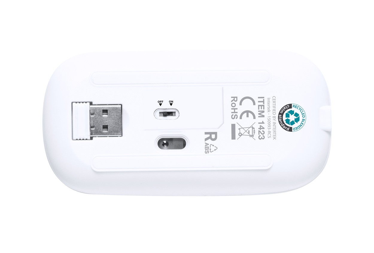 Mouse optic wireless cu carcasă din plastic ABS reciclat și baterie reîncărcabilă încorporată. Inclusiv cablu de încărcare USB.