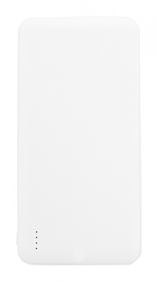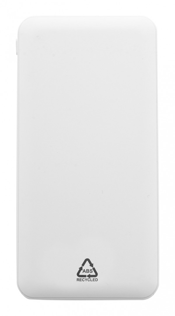 Baterie externă din plastic ABS reciclat, cu baterie de 10000 mAh. Cu 2 porturi USB și 1 USB-C pentru încărcător. Porturi de intrare micro USB și USB-C. Inclusiv cablu de încărcare USB.