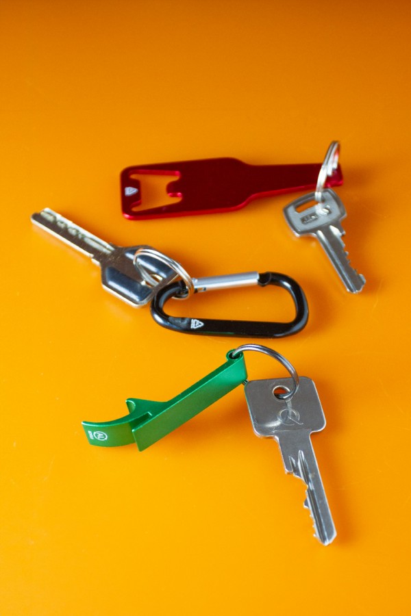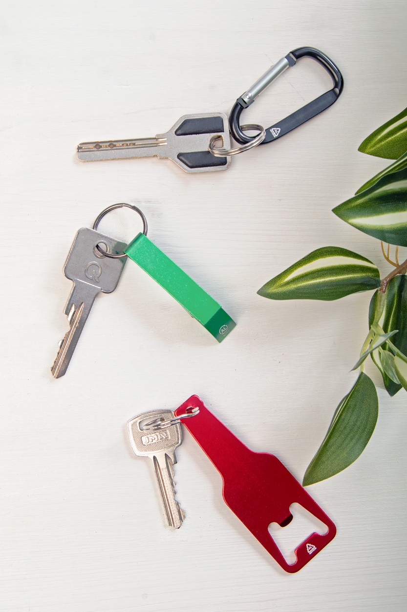 Carabină din aluminiu reciclat, cu breloc metalic.