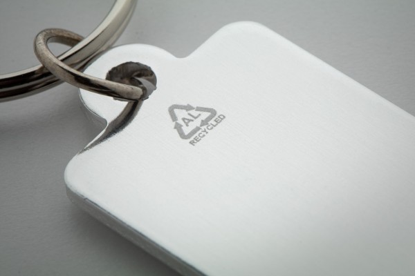 Breloc din aluminiu reciclat, cu monedă cărucior de cumpărături.