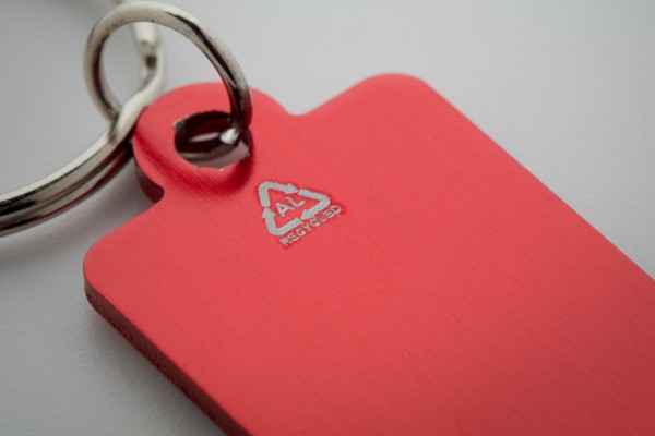 Breloc din aluminiu reciclat, cu monedă cărucior de cumpărături.