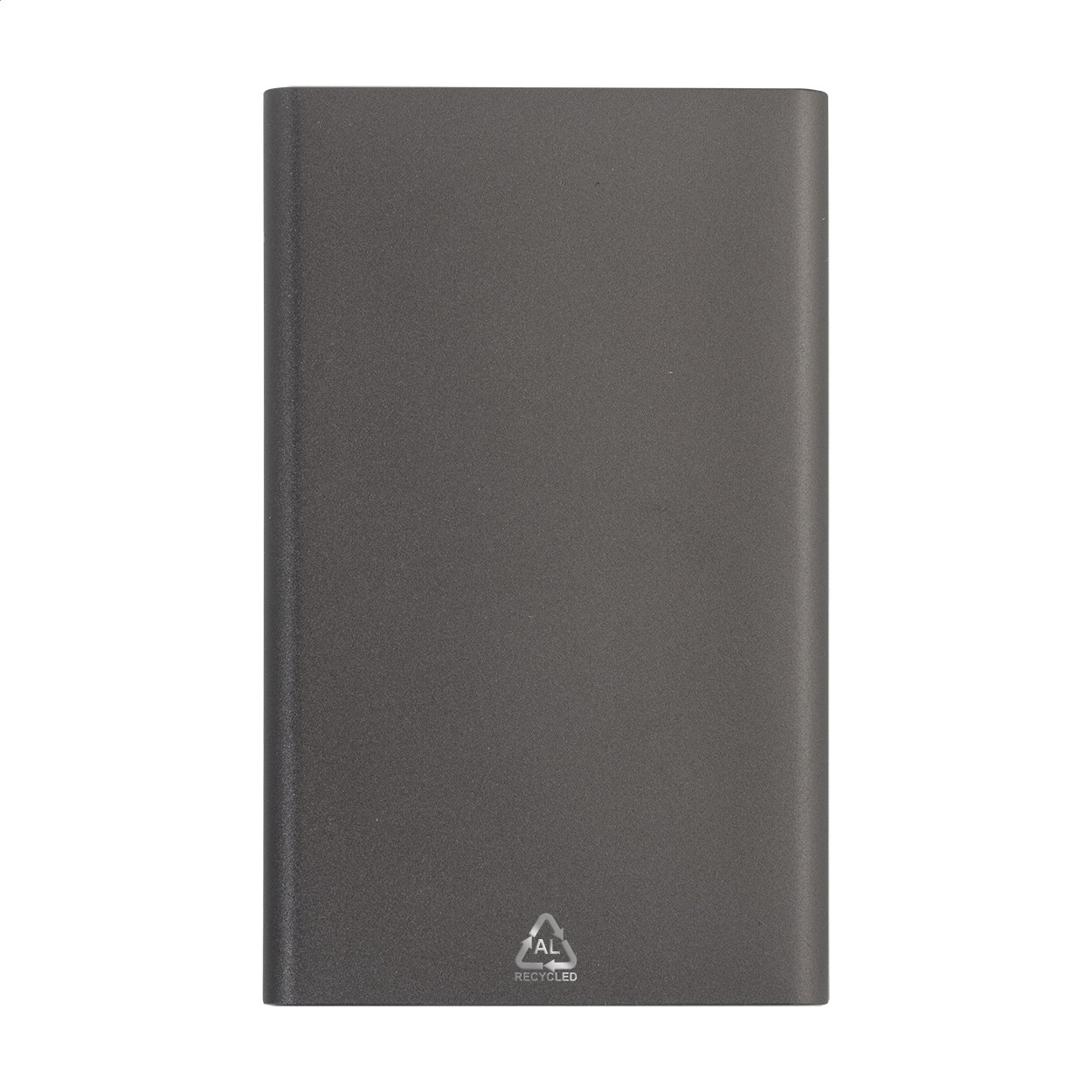 Baterie externă cu USB, în carcasă din aluminiu reciclat, cu baterie de 4000 mAh. Cu 1 port USB și 1 port USB-C pentru încărcător. Port de intrare USB-C. Inclusiv cablu de încărcare USB.