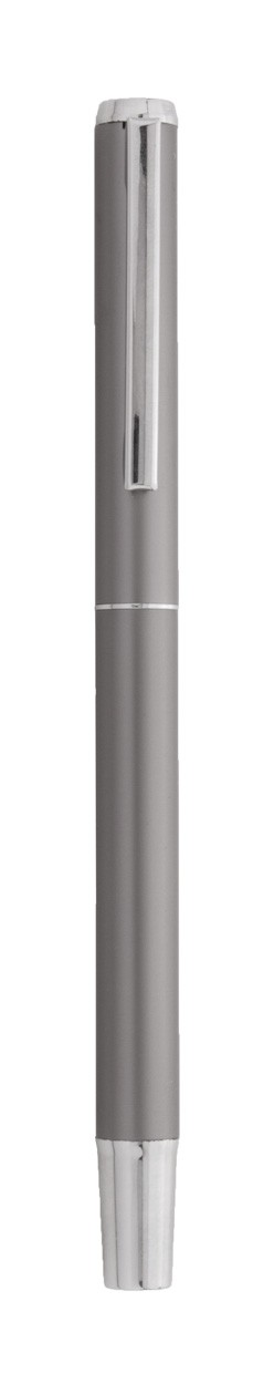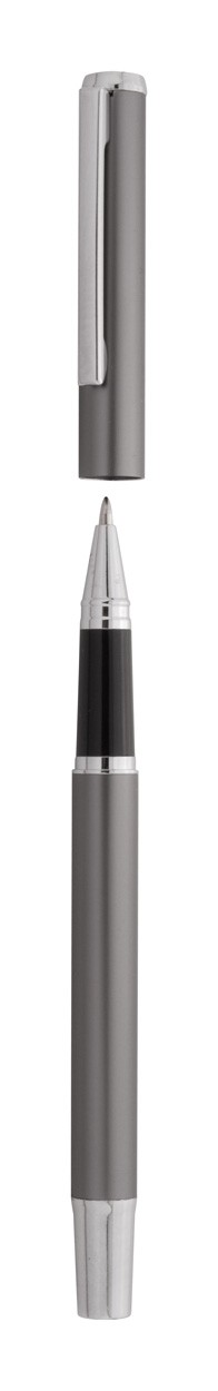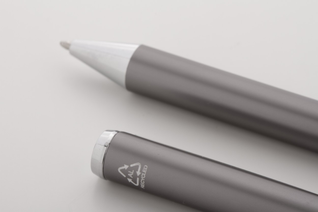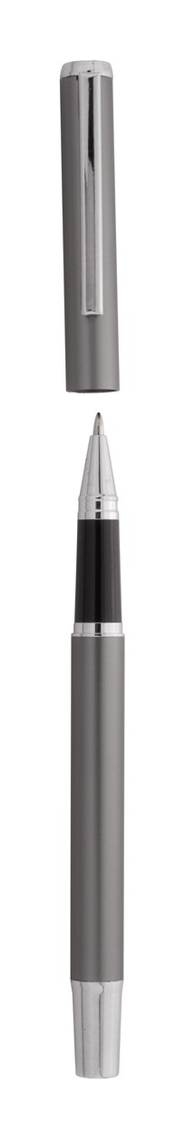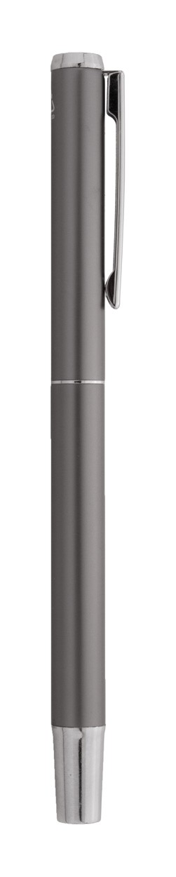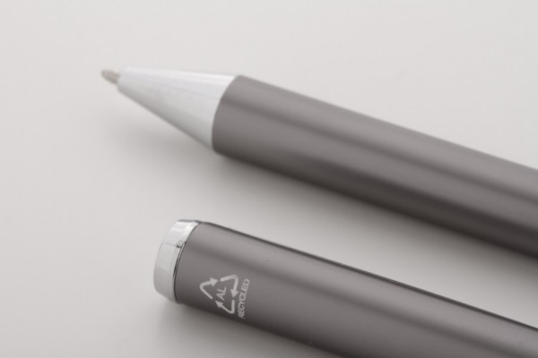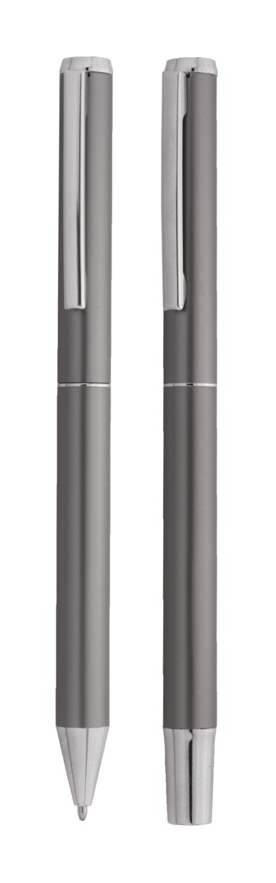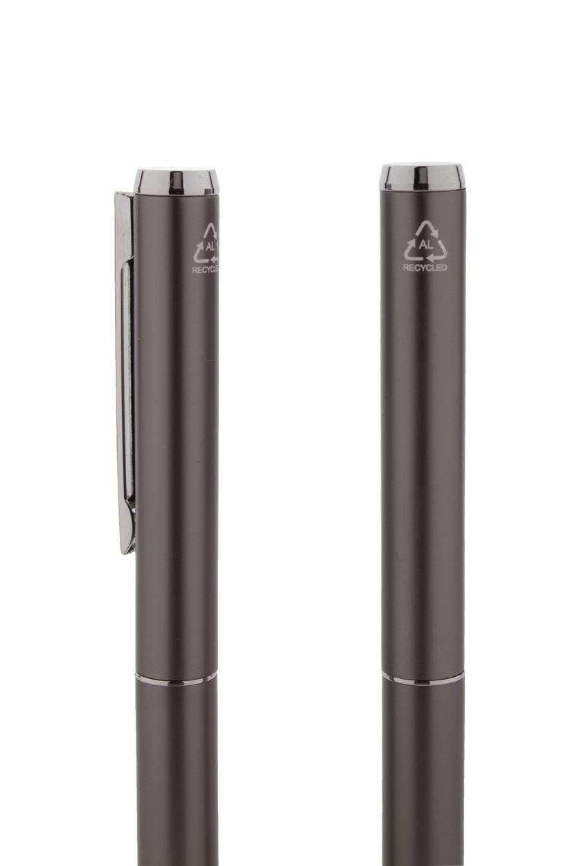 Set de pixuri din aluminiu reciclat, cu roller și pix, în cutie de cadou din hârtie neagră. Cu mină albastră.