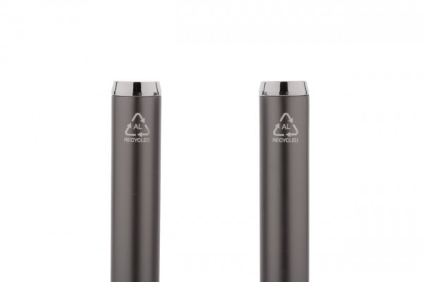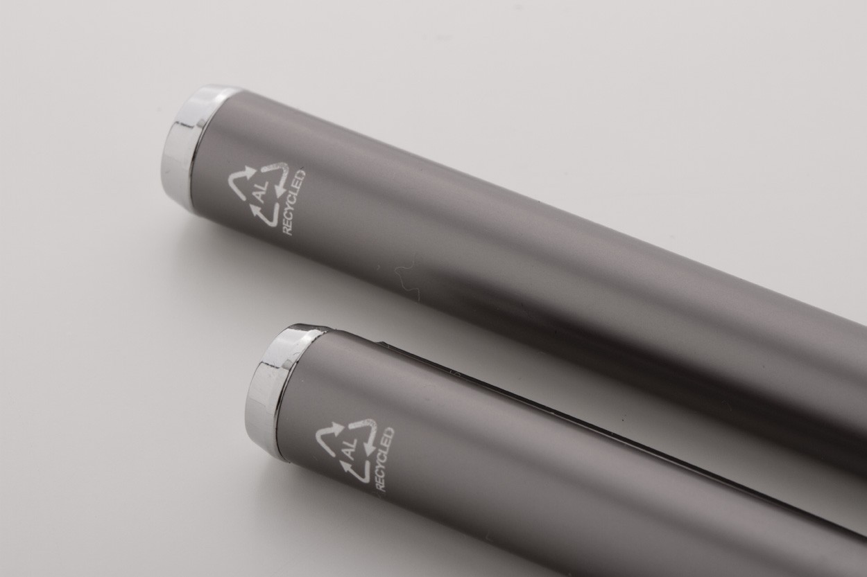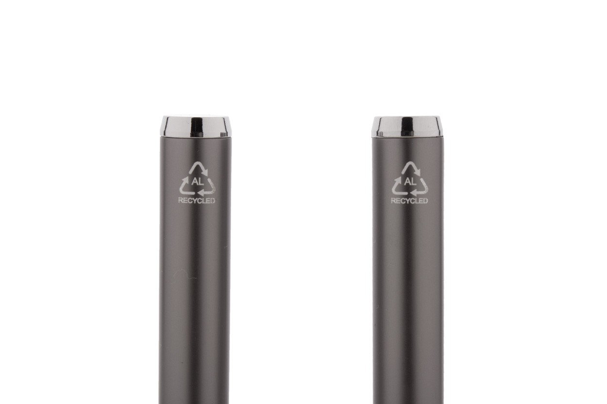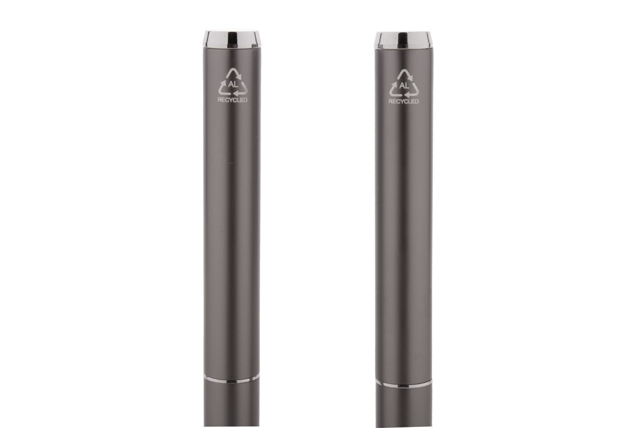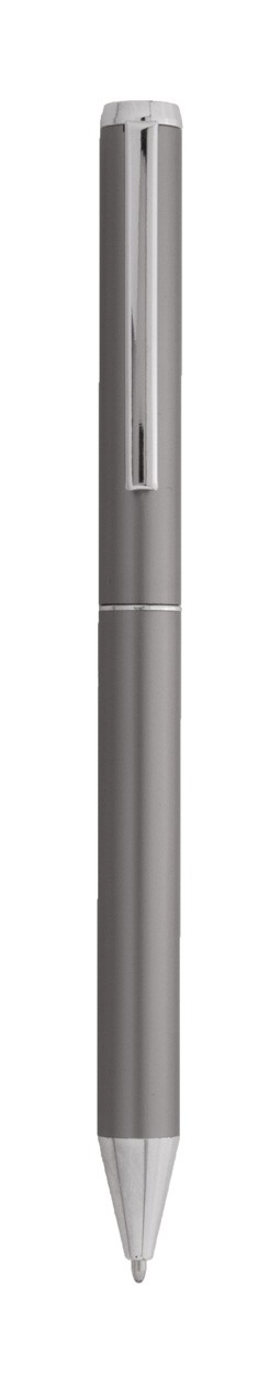Set de pixuri din aluminiu reciclat, cu roller și pix, în cutie de cadou din hârtie neagră. Cu mină albastră.