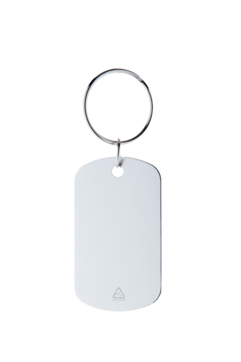 Breloc din aluminiu reciclat, cu inel metalic.
