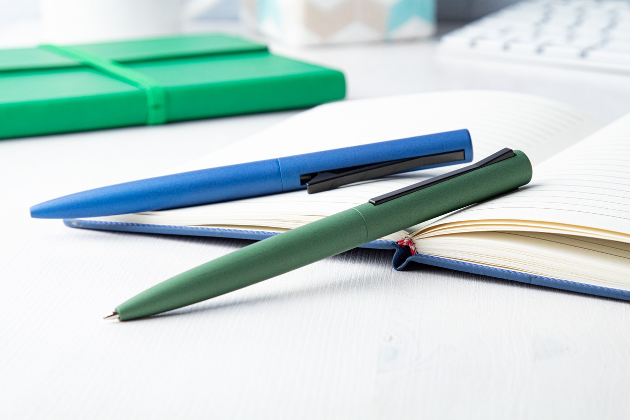 Pix din aluminiu cu finisaj metalic mat, mină albastră.