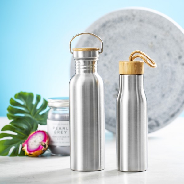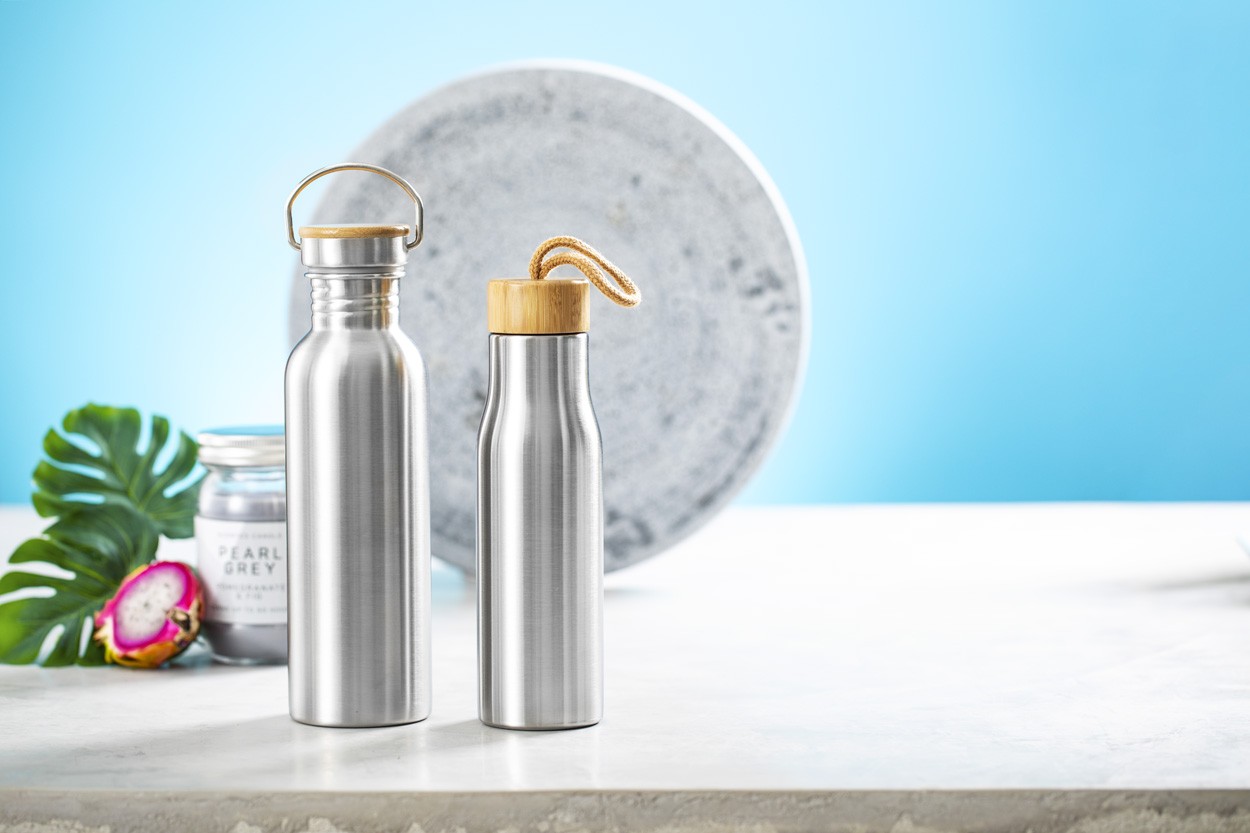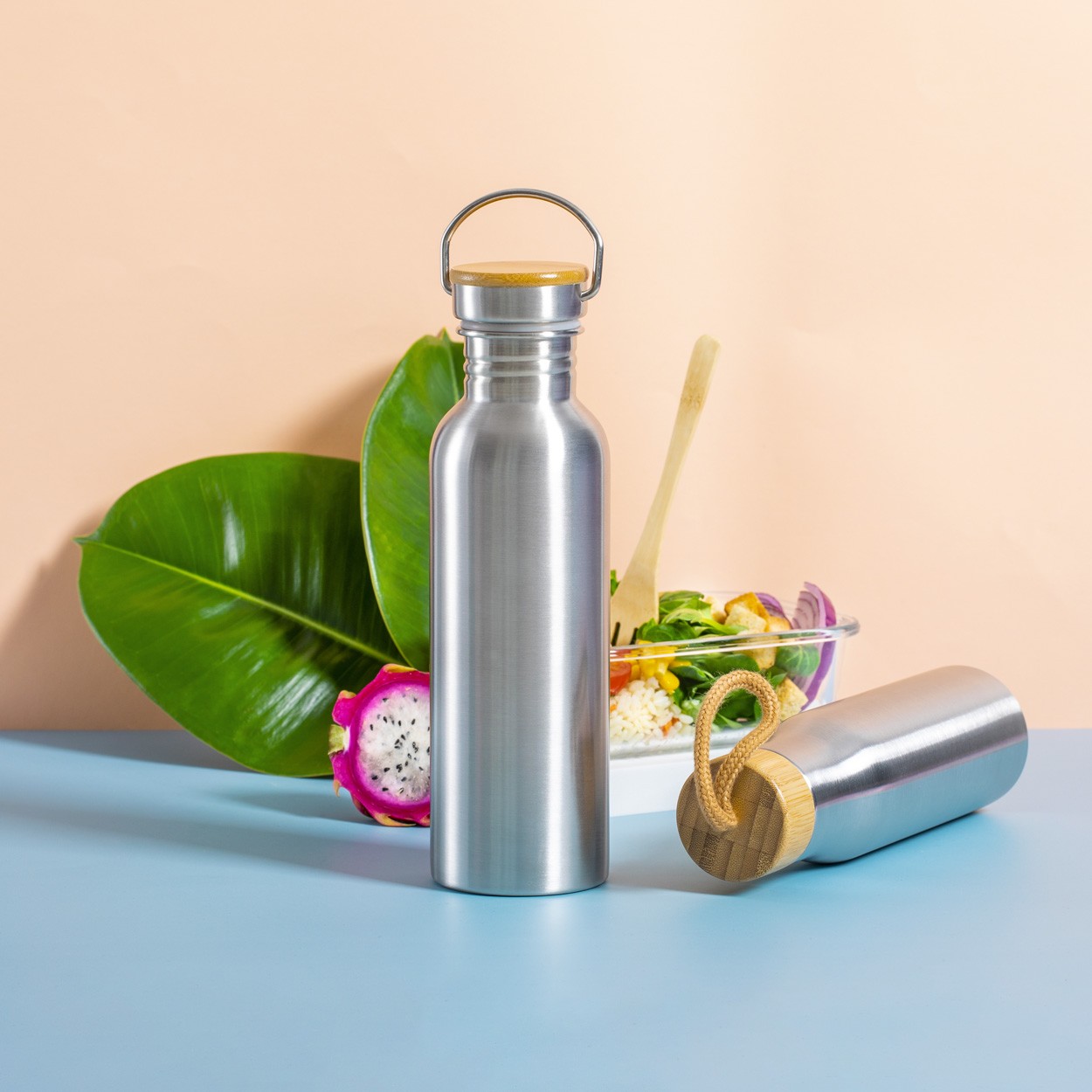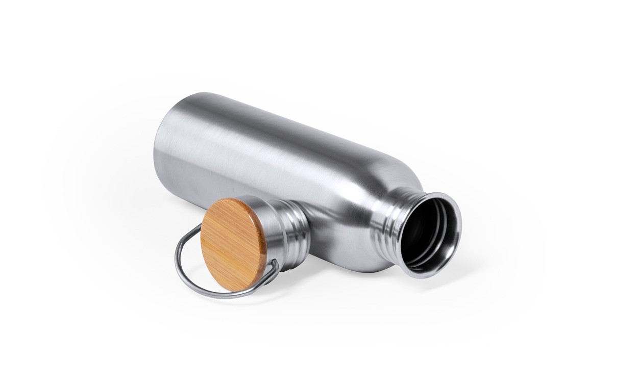 Sticlă sport din oțel inoxidabil în două culori, cu capac cu șurub de siguranță, 740 ml. Nu este potrivit pentru băuturi carbogazoase.